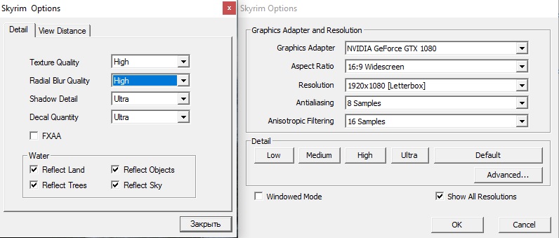Тестирование при максимальных настройках качества 1920х1080 Skyrim: Special Edition