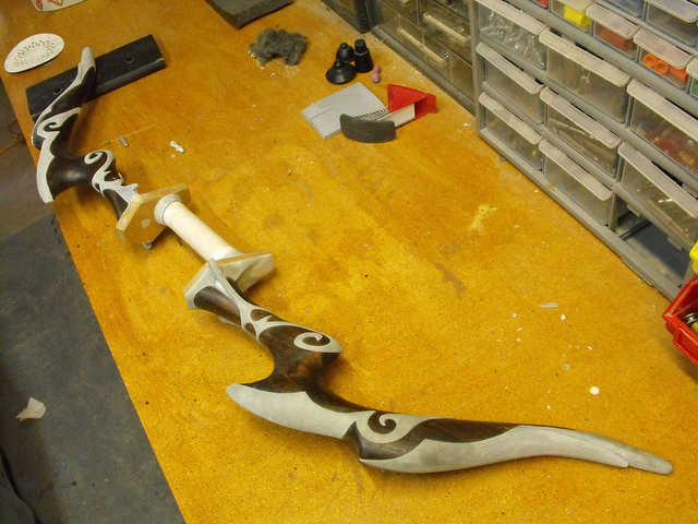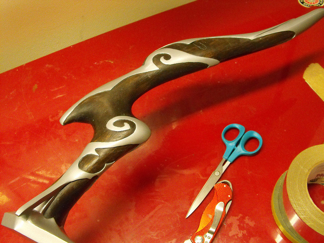 Смотрится уже лучьше, но все же это не конец. Далее автор покрасил эпокси скульптовую "налепь", придав ей тем самым, металлический цвет.