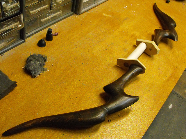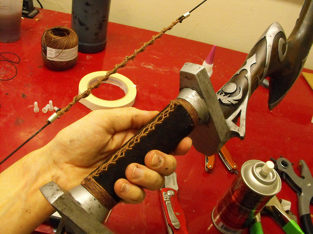 Потом мастер обшил рукоять, прикрепил тетеву.