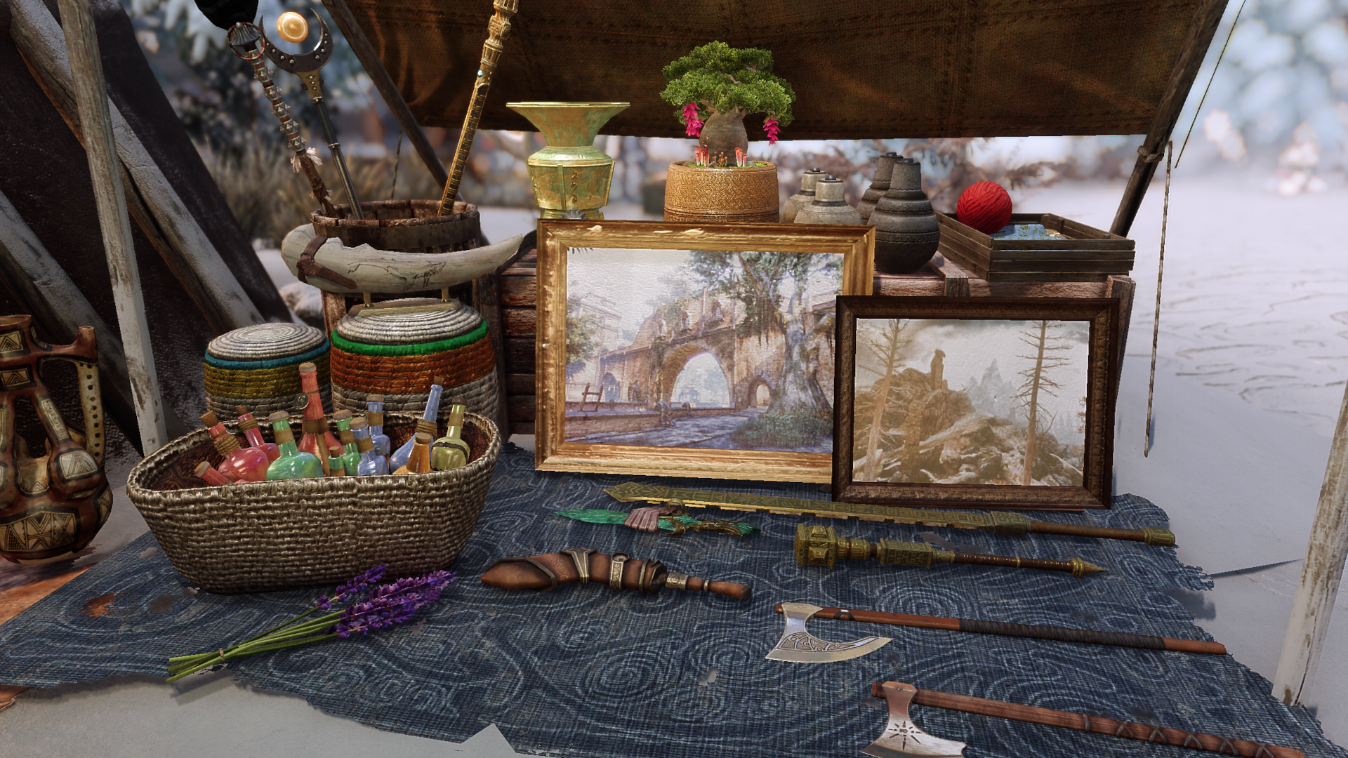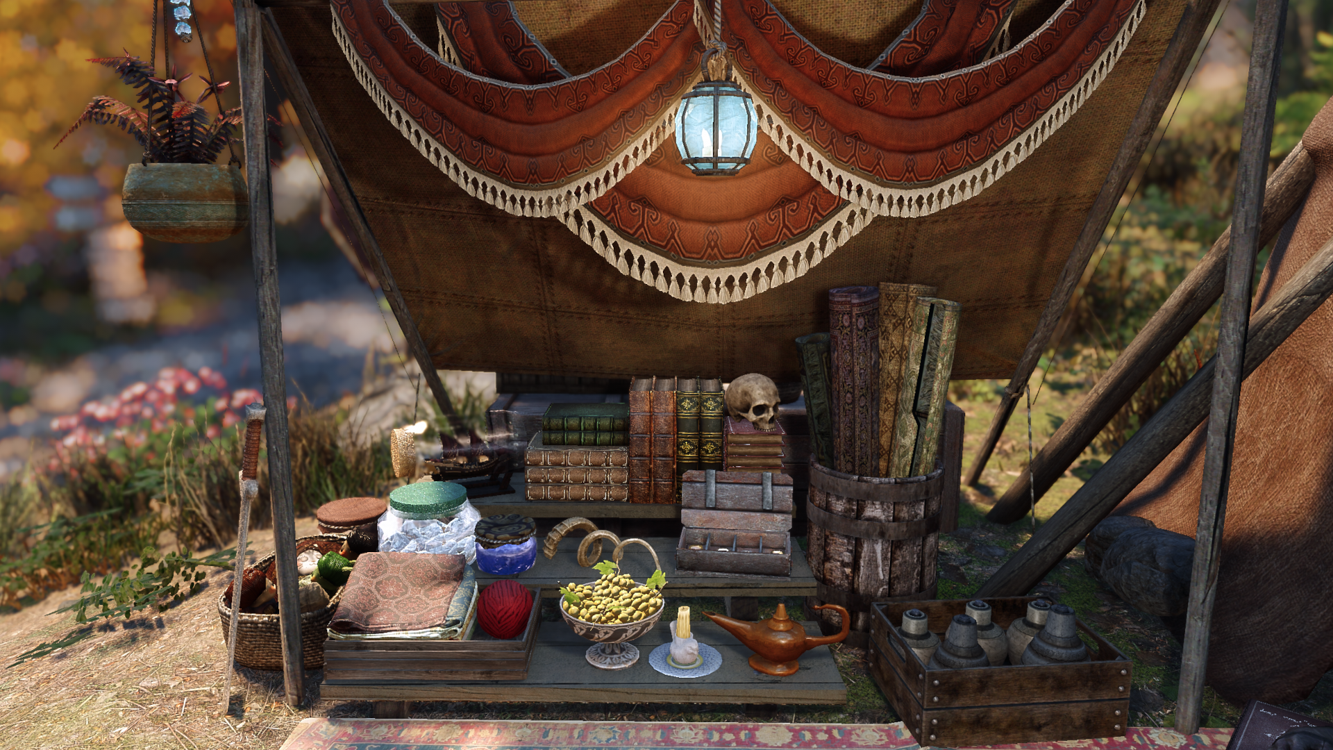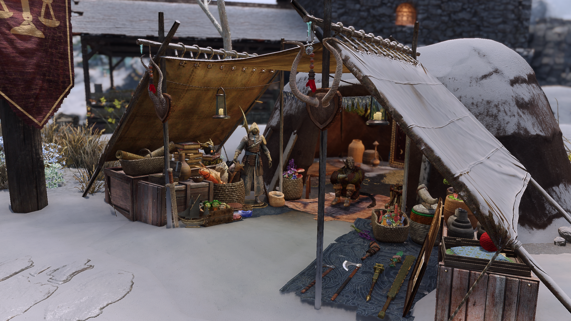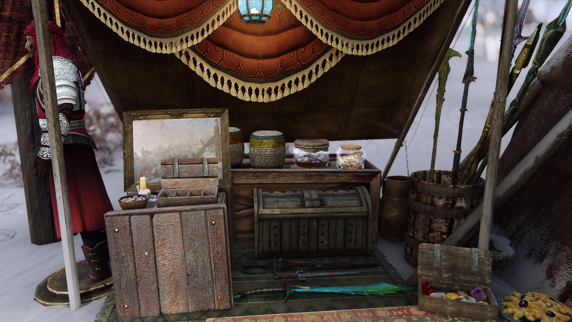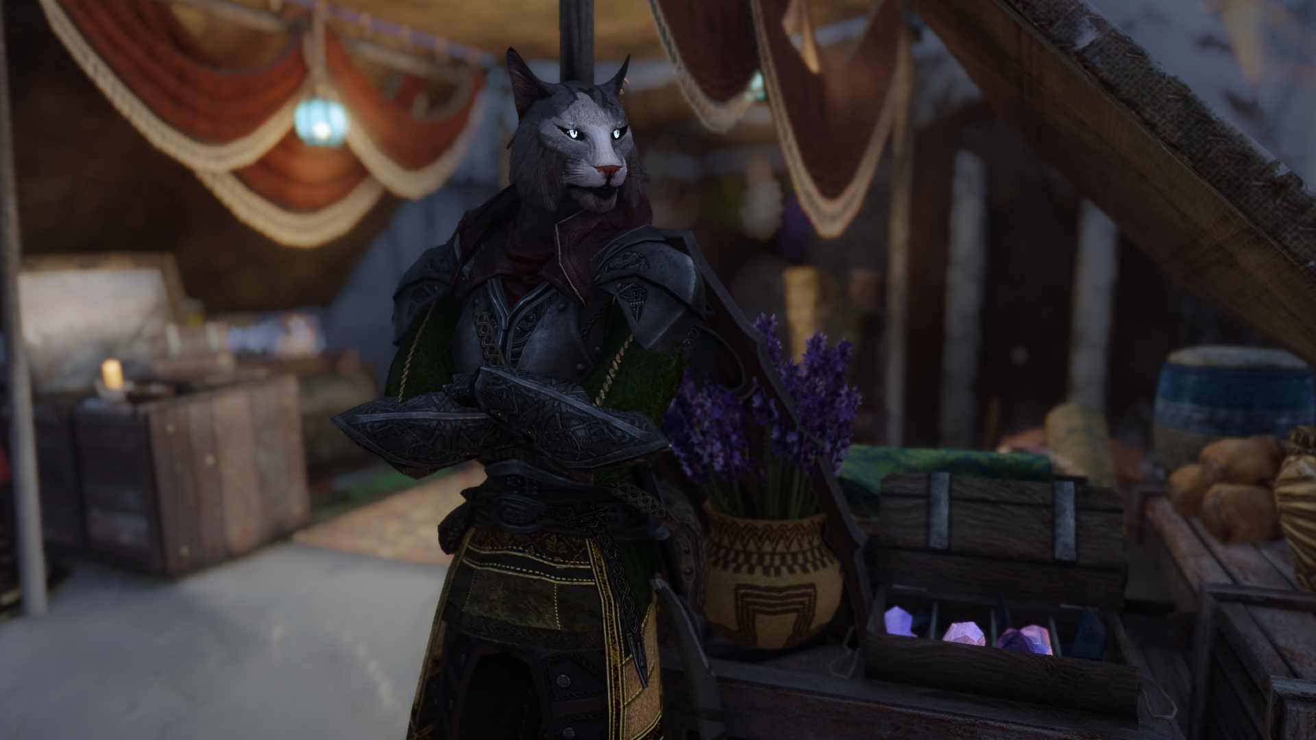 Но allonsywisegirl хочет исправить это недоразумение с помощью своего мода Khajiit Has Wares - A Caravan Camp Overhaul. Как следует из названия, цель мода - улучшить общий вид караванов каджитов и украсить их так, как это сделали бы представители странствующей расы. Хотя вокруг лагерей можно увидеть гораздо больше предметов, мод, к сожалению, не дает каджитам больше предметов для продажи. Похоже, создателя интересует только внешний вид лагерей.