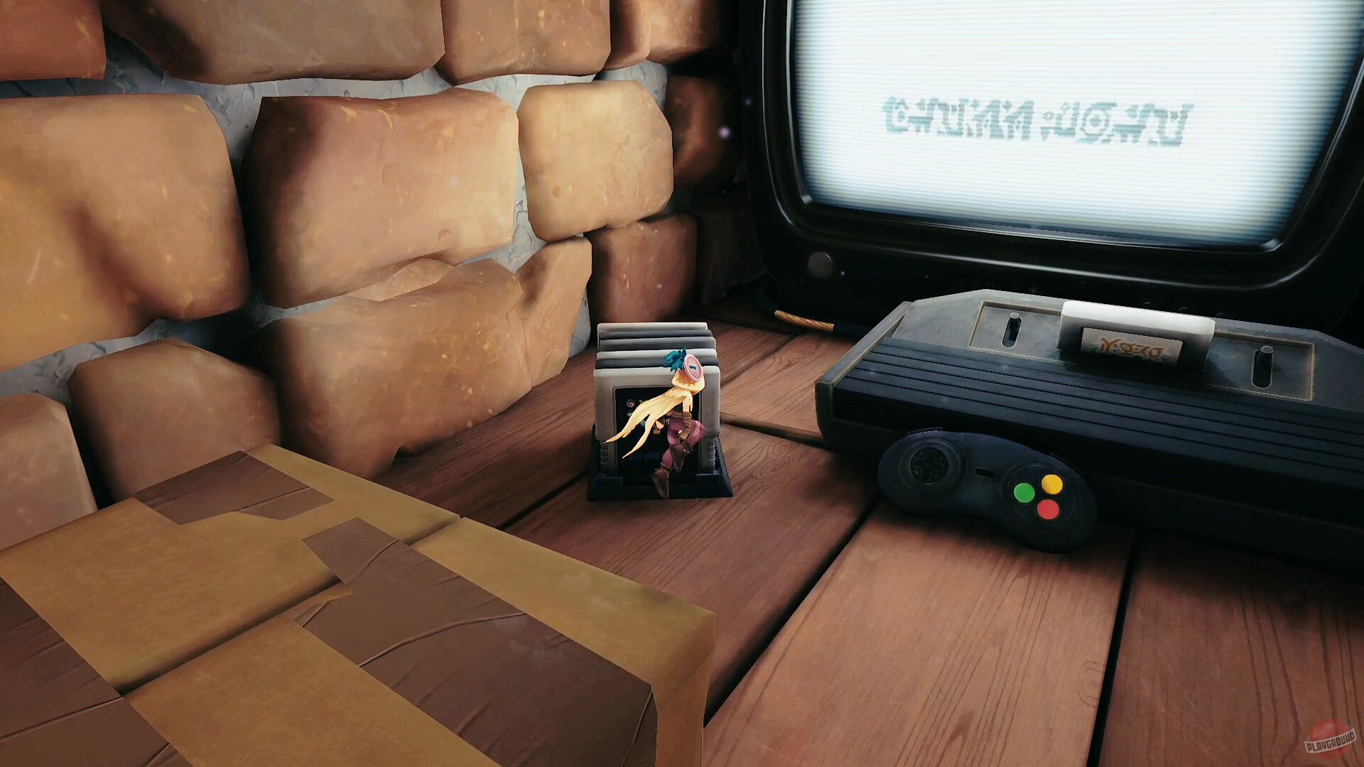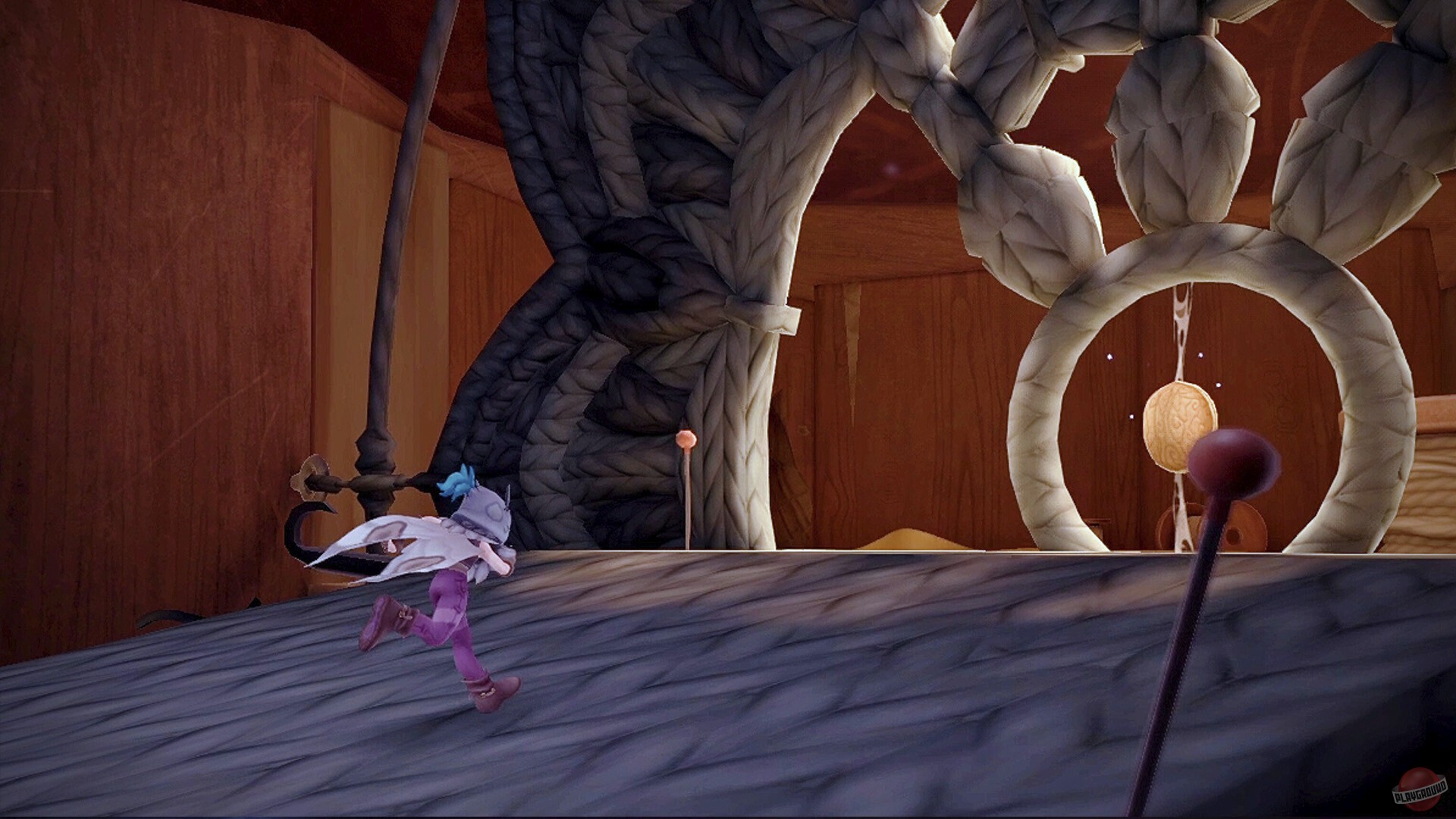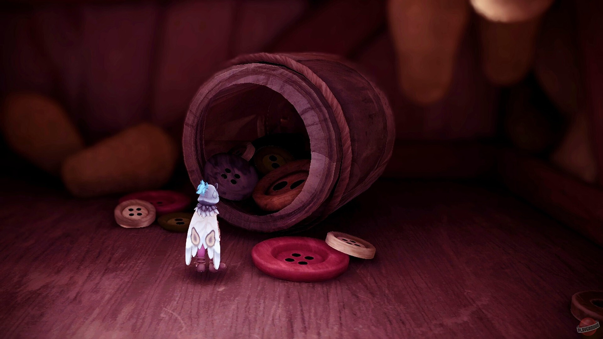 Геймплей, кстати, разнообразный: то бегаешь по объёмным комнатам в поисках ресурсов, то пробираешься по узким проходам как в платформере. Потом из найденных материалов крафтишь снаряжение — специальные ботинки для высоких прыжков, крюк-кошку для лазанья, всякие приспособления для быстрого передвижения. В этой игре даже самые обычные предметы приобретают новый смысл: пуговица становится столом, иголка — мечом, ореховая скорлупа — шлемом.
