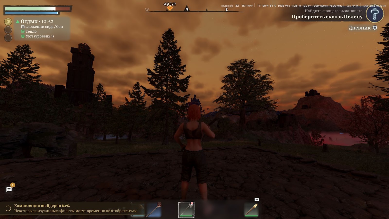 Выставлять предметы легко, а вот найти среди сотни рецептов подходящий и быстро нажать нужную кнопку получается не всегда. То и дело промахивался и открывал не ту вкладку. Система потребностей, а именно голода, холода и отдыха, очень щадящая и не заставляет игрока каждые пять минут возвращаться в лагерь. Можно спокойно сконцентрироваться на выполнении заданий и не думать каждую минуте о количестве припасов в сумке.