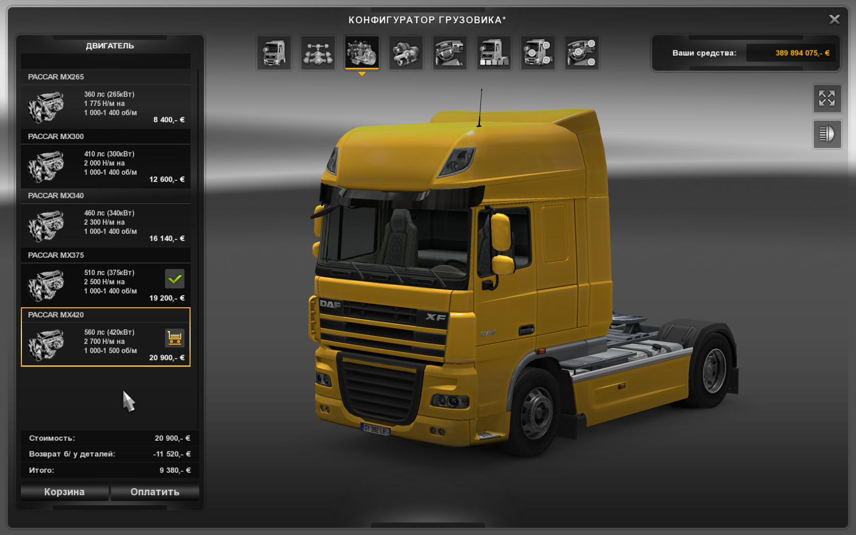 6. Добавлен двигатель Paccar MX420 мощностью 560 л.с. для DAF XF