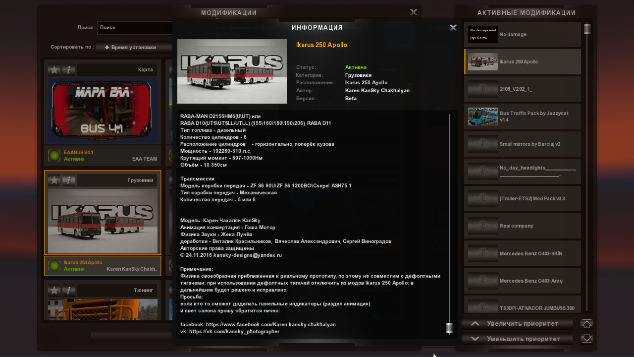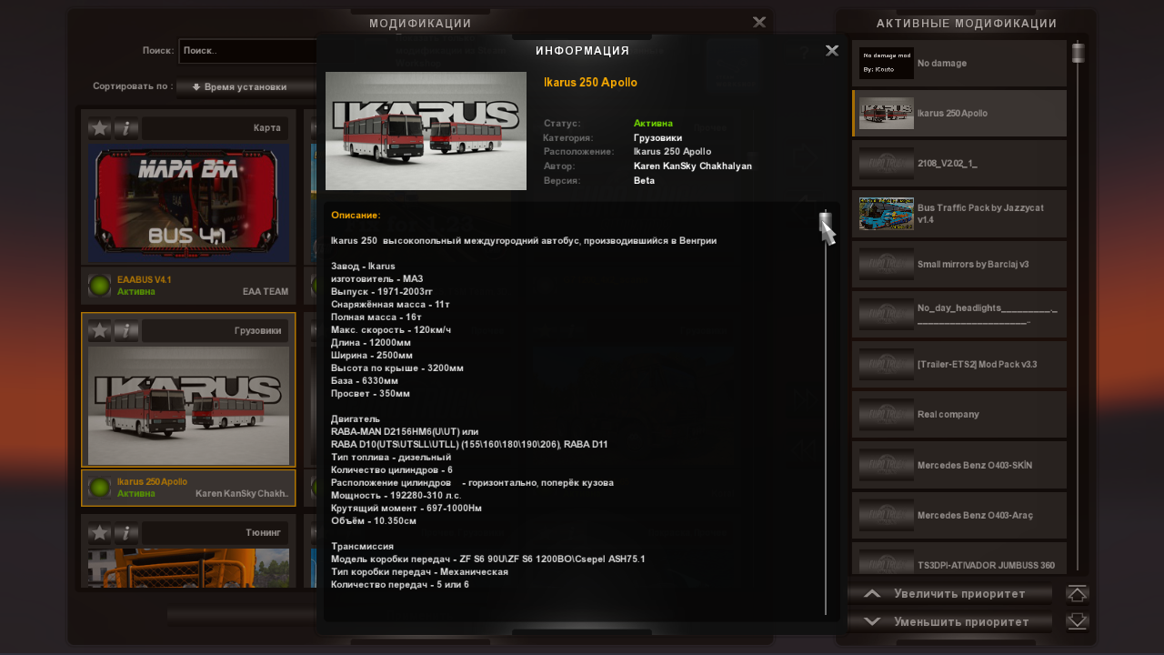 Физика своеобразная приближенная к реальному прототипу, по этому не совместим с дефолтными тягачами: при использовании дефолтных тягачей отключить из модов Ikarus 250 Apollo: в дальнейшем будет решено и исправлено.