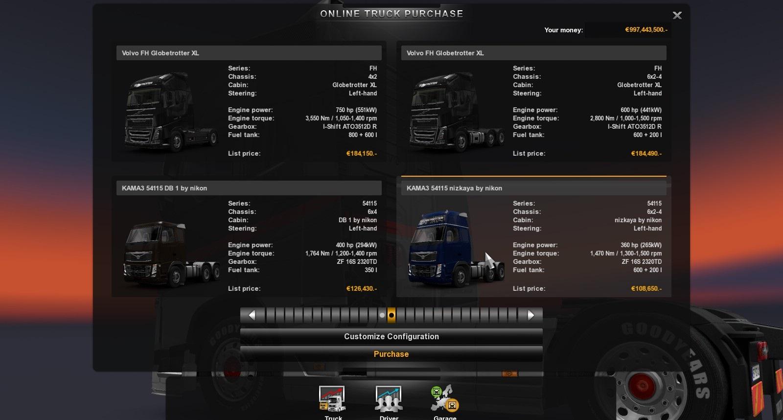 KAMAZ 54115 DB Edition . Покупается в салоне Вольво . Свой слот , ничего не меняет . Тюнингуется , свой настраиваемый салон .