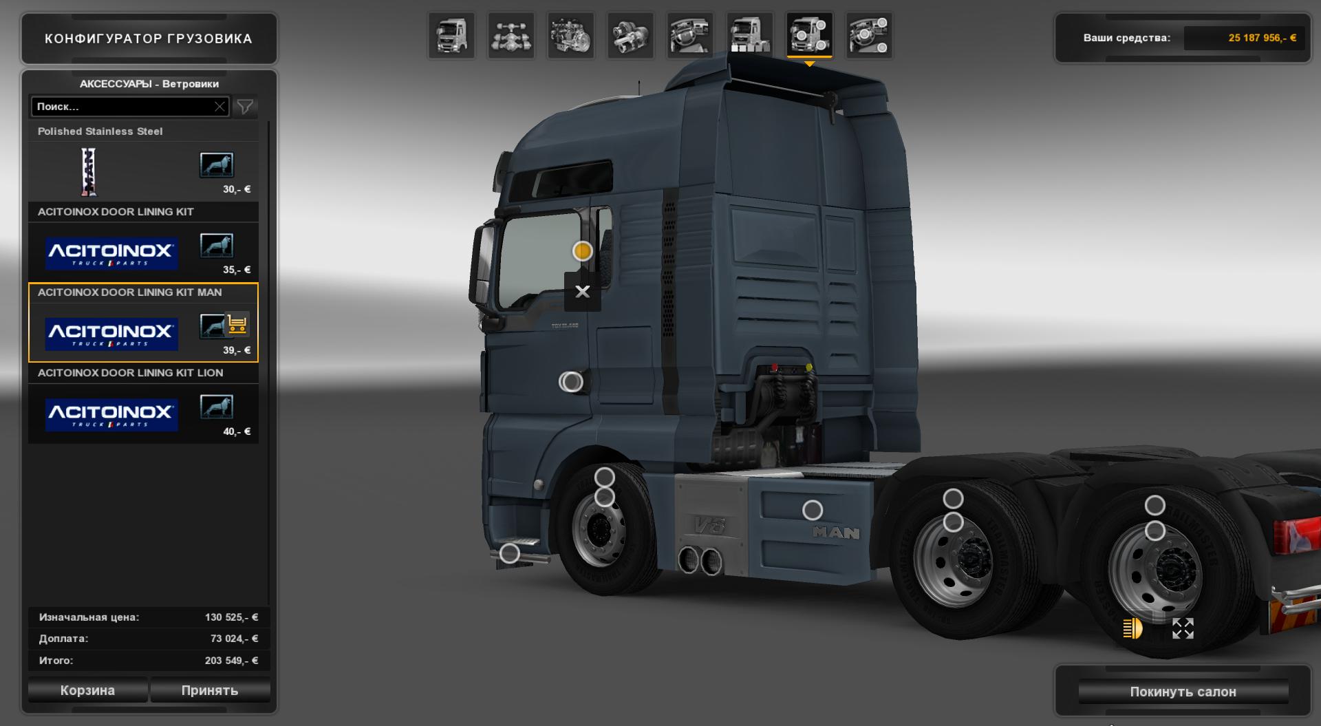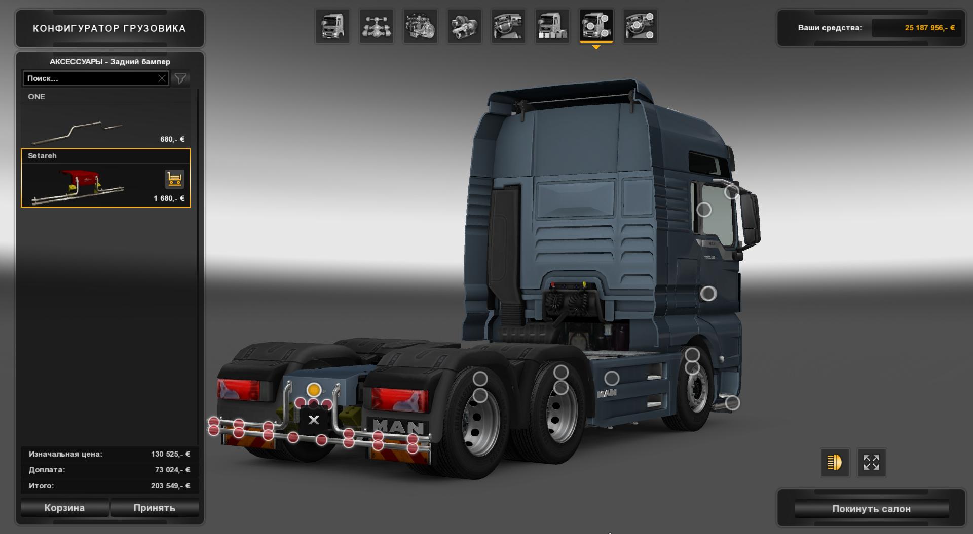 Чтобы сделать свой номерной знак на переднюю защиту и изменить скин прицепа и контейнера,