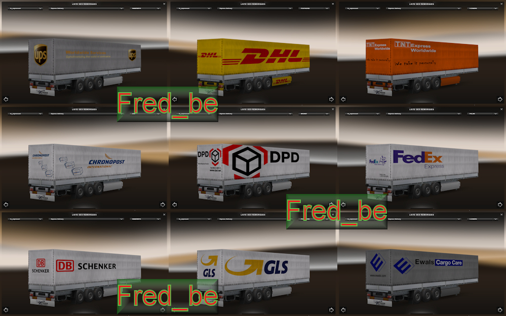Пак прицепов "Express Delivery". Все прицепы автономные, прописаны в трафик, совместимы со всеми DLC и паками прицепов