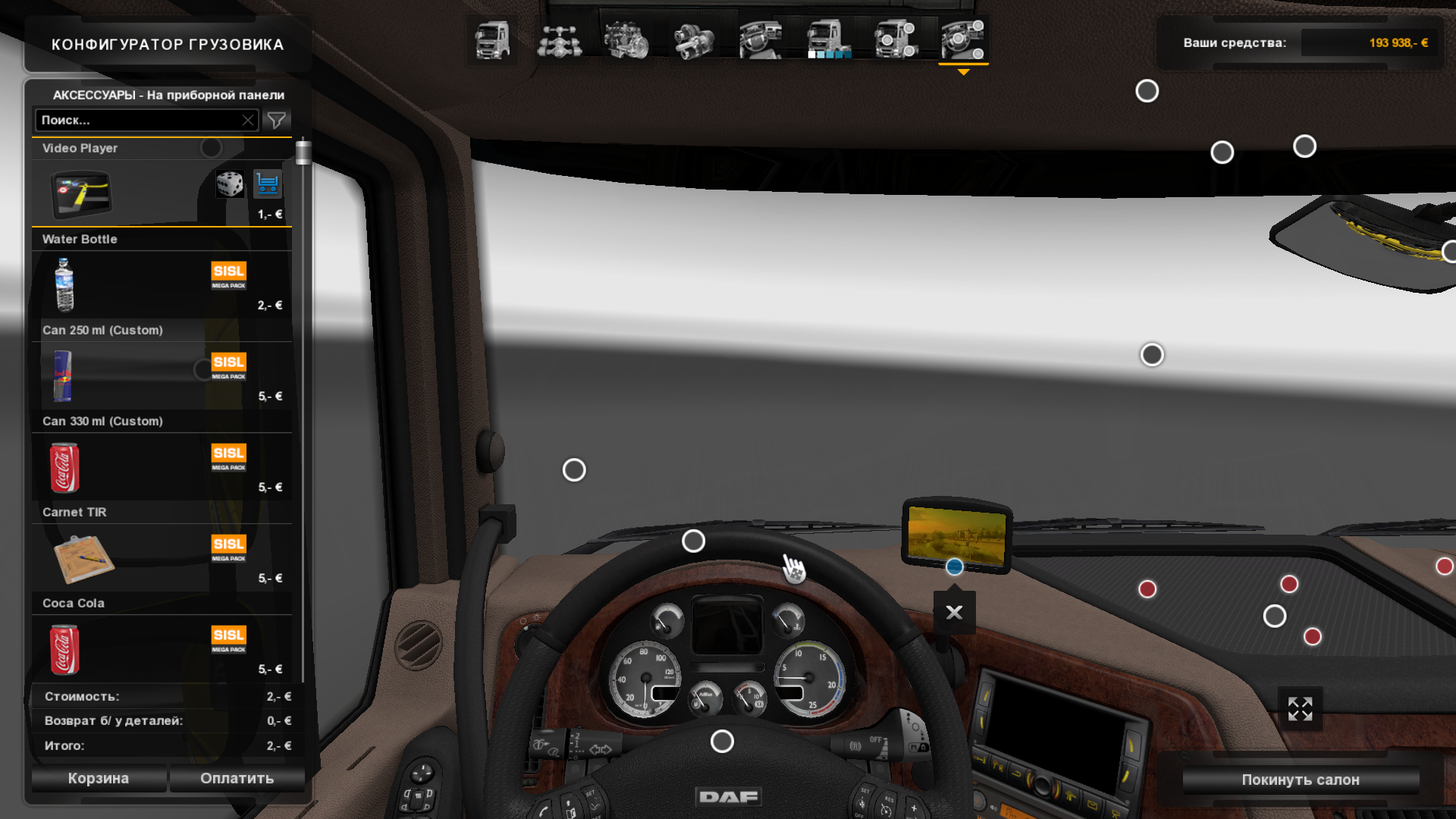 Мод добавит видеоплеер в интерьер кабины грузовика Требуется DLC Cabin Автор: Mondo.N В архиве два файла для версий 1.26 и 1.27
