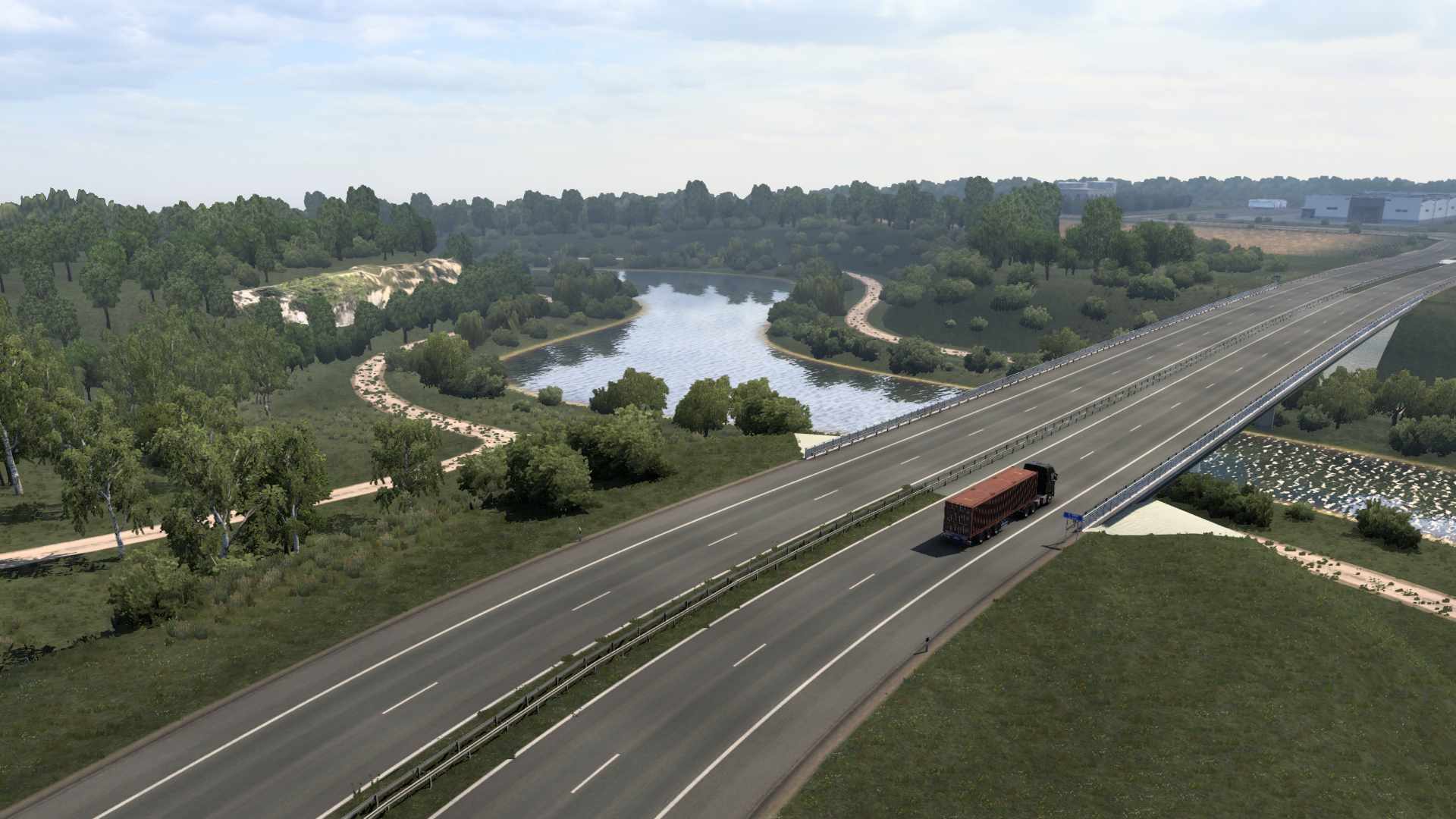 - Дорожное сообщение с ProMods по фальшивой автомагистрали E40 (реалистичная находится в стадии строительства)