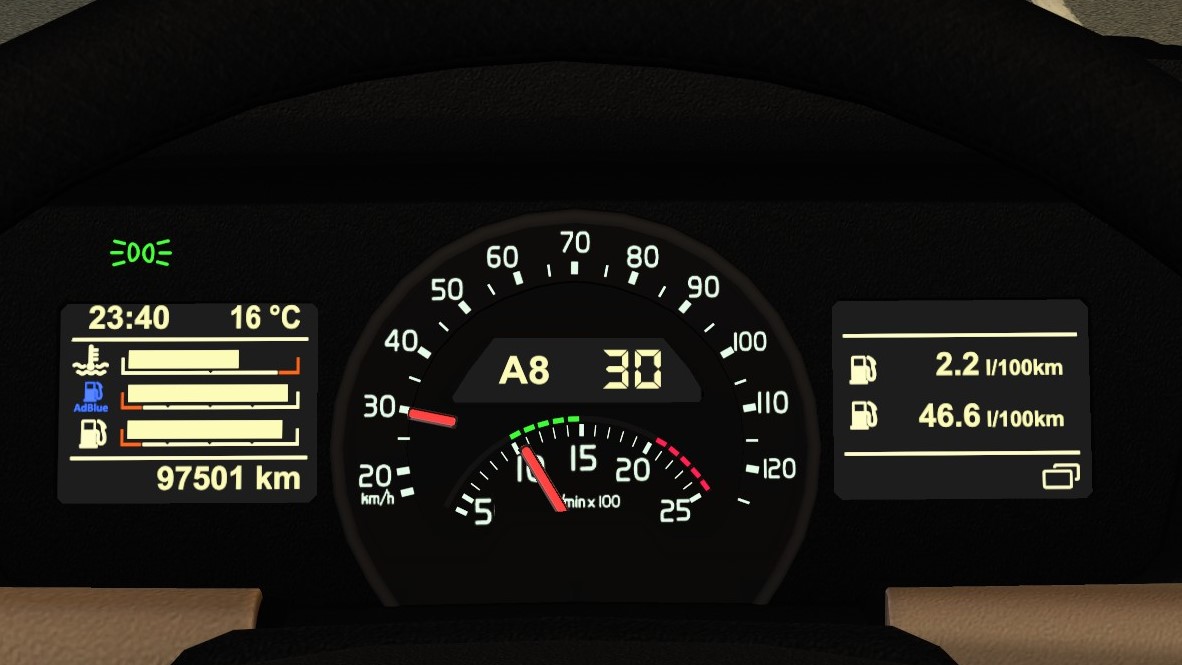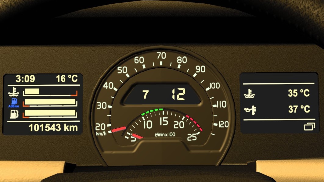 Мод добавляет в игру измененную приборную панель для Volvo FH16 2012.