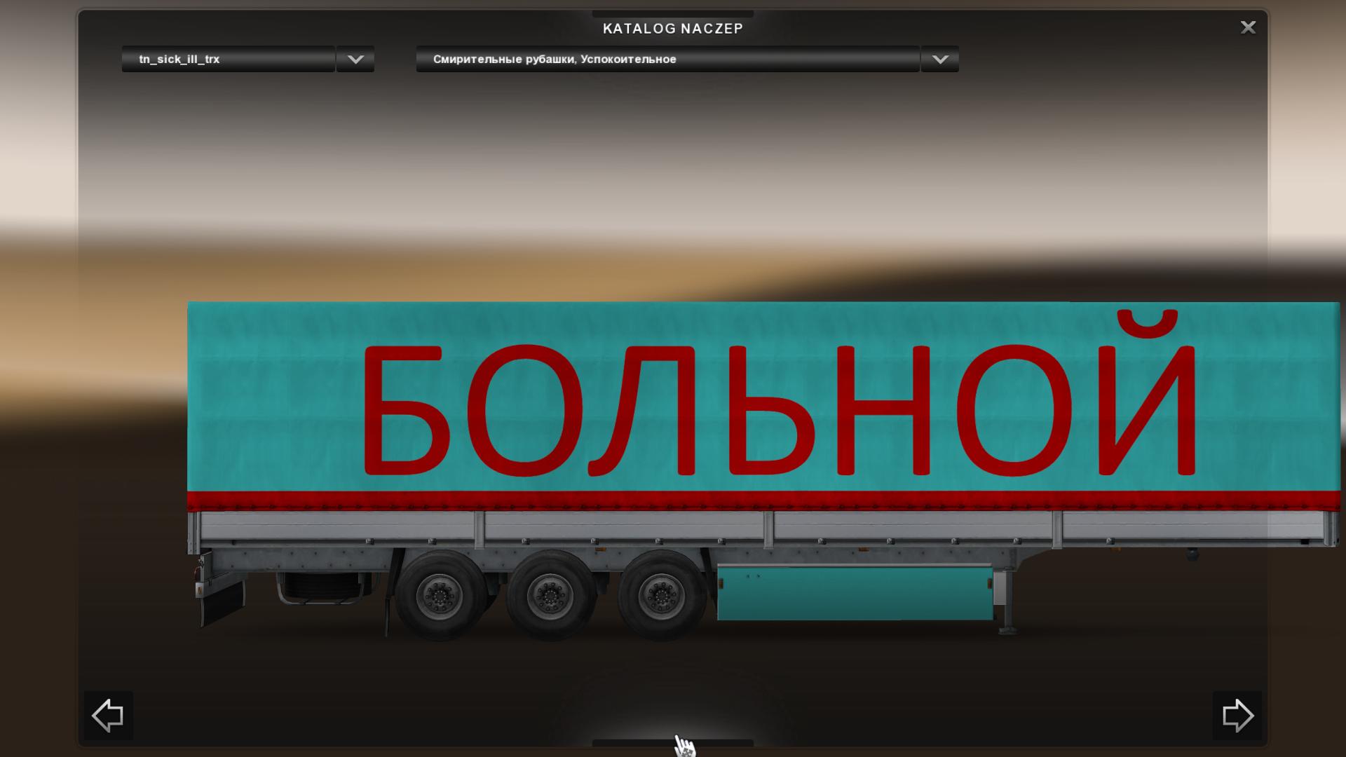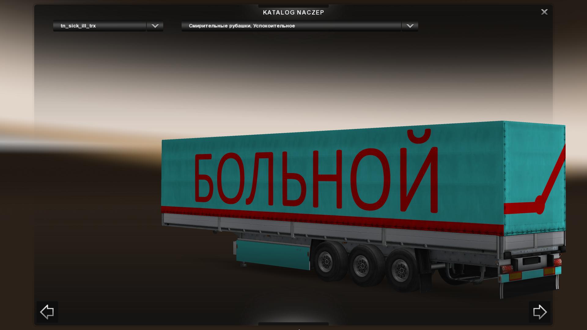 Всем привет, сегодня я хочу представить Вашему вниманию прицеп "Больной". Сее творение рук человеческих автономно, так что можете использовать совместно с иными модами на трафик и грузы. Также, прицеп совместим со всеми кртами, протестированно но версии 1.21 + карты RusMap, ProMods, TSM.