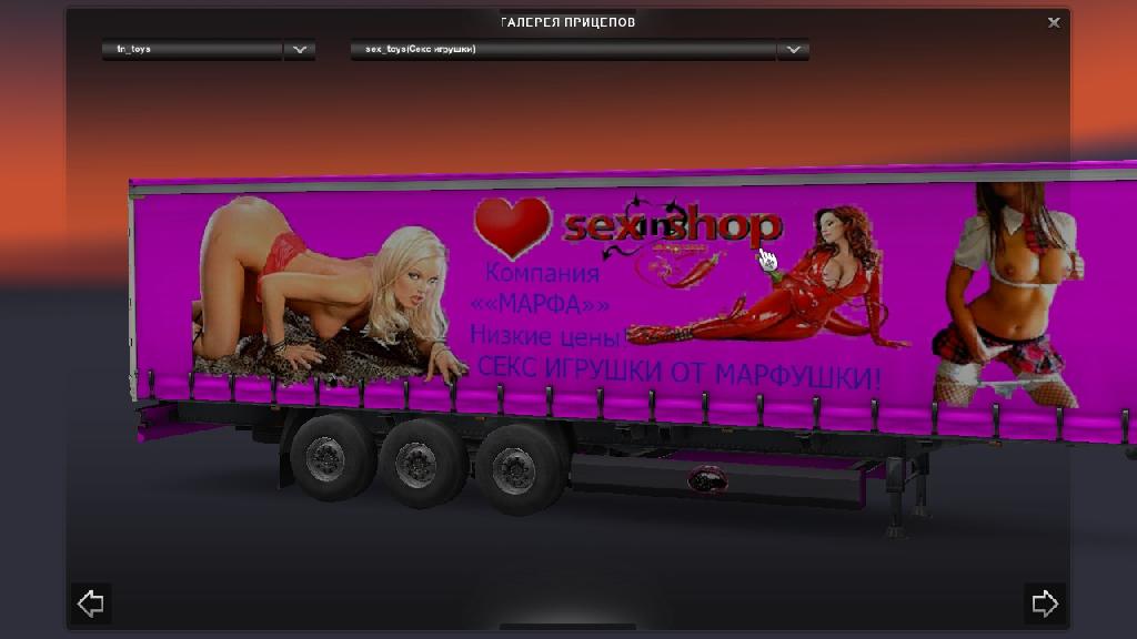 Maximka.Р я вот такой прицеп раньше сделал :D *Секс игрушки от Марфушки* вес груза 10 тон компания Марфа мы сделаем вашу жизнь ярче :D ничего не заменяет,он есть и в трафике цвет конечно больно яркий сылку кинуть на прицеп?