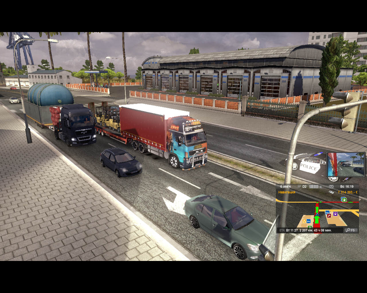 Есть решения выхода из игры с "чужим" грузом,нужно просто отцепить прицеп и можно покинуть игру.А когда снова начинаеш игру прицепиться заново и продолжить маршрут.