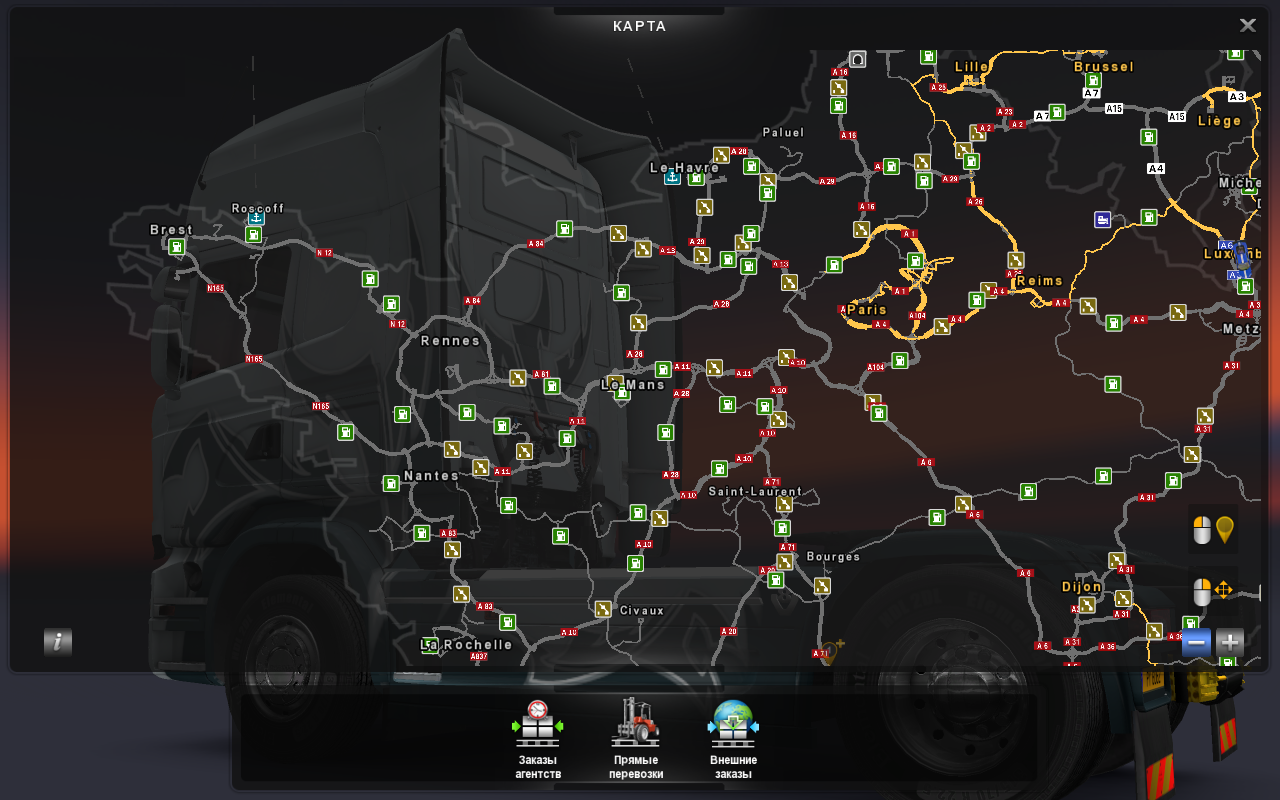- В игре нет реального отображения городов, если не заметили, этот вопрос можно задать по любому городу в виртуальном мире. Говоря проще, делать его такой ни к чему. Мы ведь грузоперевозками занимаемся, а не прогулками по городу, нас интересуют базы и предлагаемый список грузов.