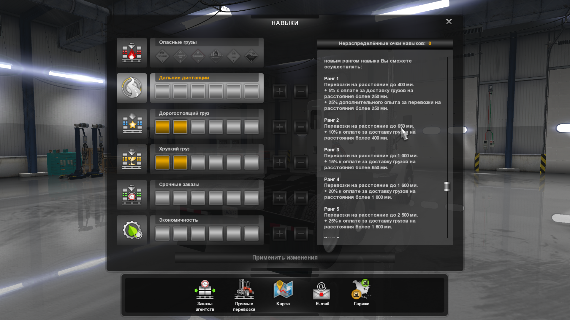 Я прокачивал только опасные грузы и дальность рейсов. Имею 6 уровень, то что у меня рейсы через всю карту эту нормально? Ответ очевиден, что ползунком можно и увеличивать дальность рейсов.