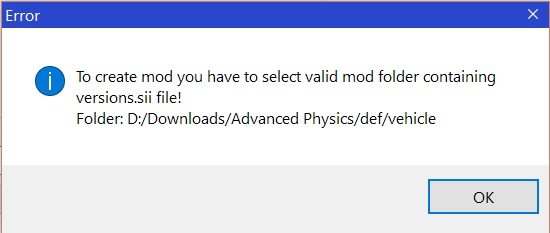 При выборе папки с модом у меня всегда вылазит одна и та же табличка (