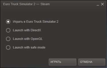 По умолчанию игра работает от DirectX , а OpenGL подключается автоматически для отработки графики ( в основном прицепов и других подвижных объектов , как правило модов ) , но есть моменты с модами , когда нужно перевести на отработку только одной из этих библиотек , что не очень положительно сказывается на качестве отображения ( особенно при ОЗУ менее 4Гб ) . Если у тебя игра работает без видимых ошибок , то пусть остаётся установка по умолчанию , самая верхняя : Играть в Euro Truck Simulator 2 .