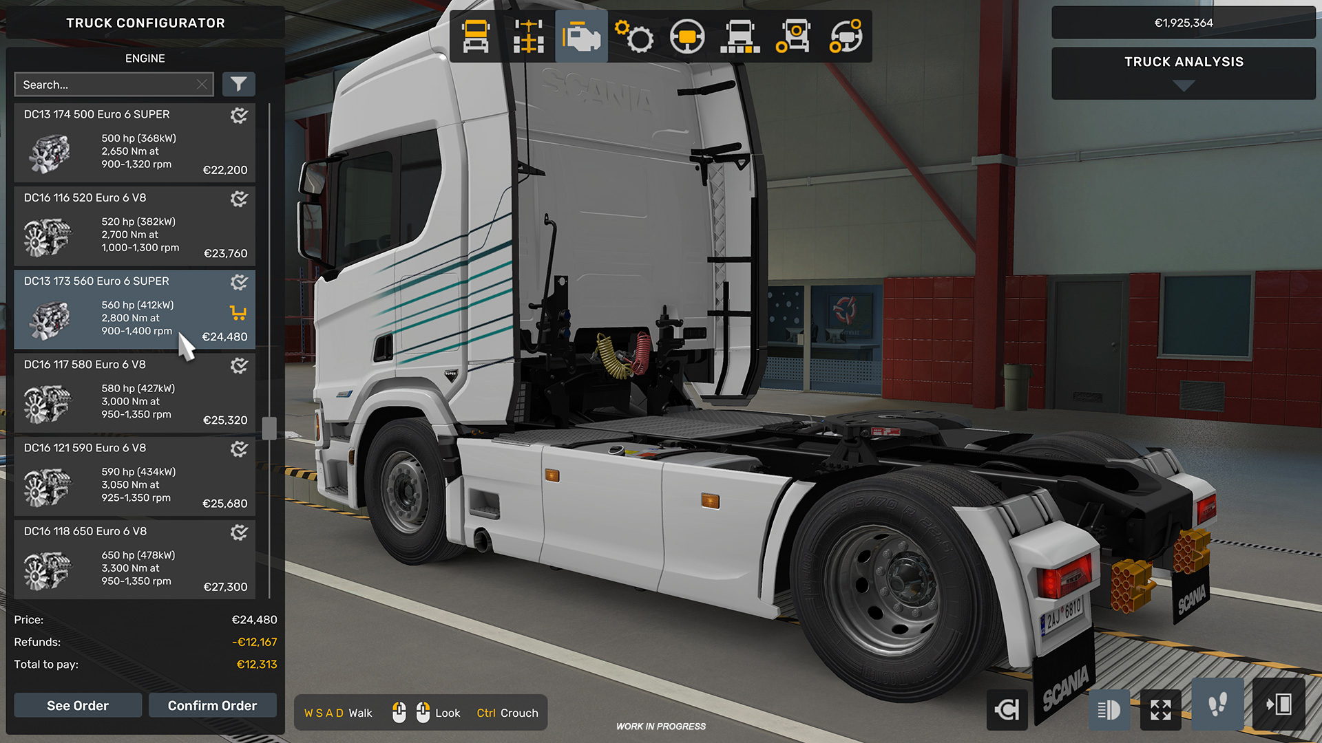 Это обновление представит широкий ассортимент двигателей SUPER, включая варианты мощностью 420, 460, 500 и 560 лошадиных сил. Разработчики знают, что многие игроки с особым нетерпением ждали новейших двигателей Scania V8 и рады сообщить, что мощные двигатели мощностью 590, 660 и 770 лошадиных сил, а также новые трансмиссии Opticruise G25, G33, G38 CM и CMR также будут включены в это обновление. Независимо от того, перевозите ли вы грузы на дальние расстояния по автомагистралям или занимаетесь более сложными негабаритными перевозками, эти двигатели обеспечивают как отличную топливную экономичность, так и тяговую мощь, которой славится Scania.