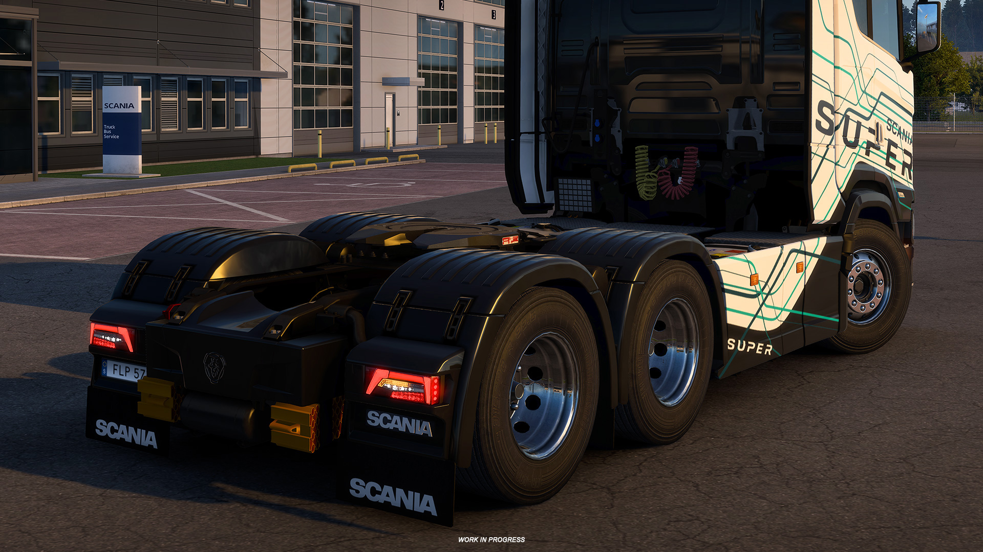 Игроки также смогут оценить ряд новых опций внешнего оформления Scania R & S, включая возможность установки шильдиков SUPER на двигатель, эмблем решётки радиатора и специальных шильдиков на кабину для владельцев тюнинг-пакета Mighty Griffin. Кроме того, будет добавлена возможность установки отдельных задних фонарей, передних крыльев с датчиками и съёмных накладок на задние крылья.