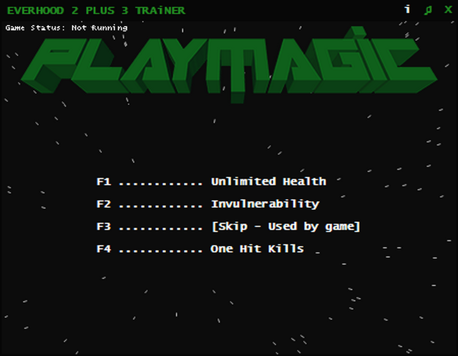 ВАЖНО: Из-за особенностей работы игрового движка вы можете переключать F1 и F2 только после потери некоторого количества здоровья, а F4 только после попадания по врагу. После этого вы можете включать/отключать это по желанию, поскольку соответствующие функции будут отображены в памяти.