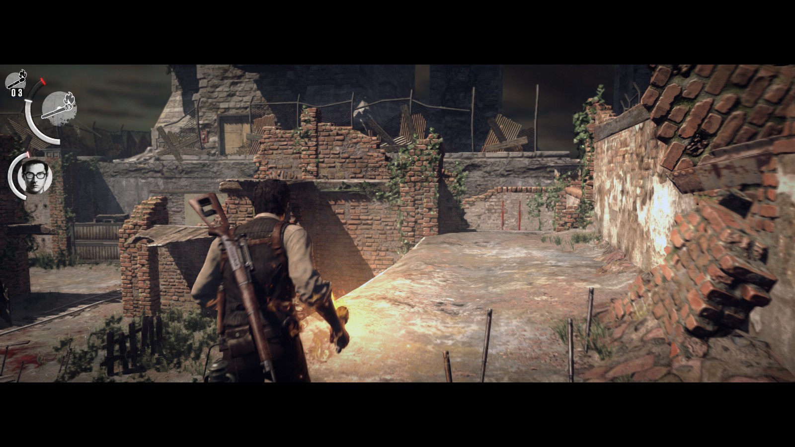 3. Как и многих других, меня жутко выбесили прокуренные лёгкие главного героя. Спринтует он примерно как и Алан Уэйк (правда, тот вроде не курил - хз, в чём была его проблема) - 3 секунды, и уже одышка. И в то время как Алан всё же, хоть и сворачиваясь в колбаску, пытался непрерывно поддерживать бег - наш Себастьян запыхивается настолько, что прямо останавливается и не может сдвинуться с места некоторое время. Особенно комично (и вымораживающе) это выглядит во время битвы с каким-нибудь бензопильщиком. Но всё же Себастьян отличается от Алана и кое-каким положительным моментом - из-за невозможности добыть сиги во время своих безудержных приключений он вполне способен пойти на поправку, и в определённый момент игры начнёт бегать, как нормальный человек. Но этот момент нужно вкачивать самому.