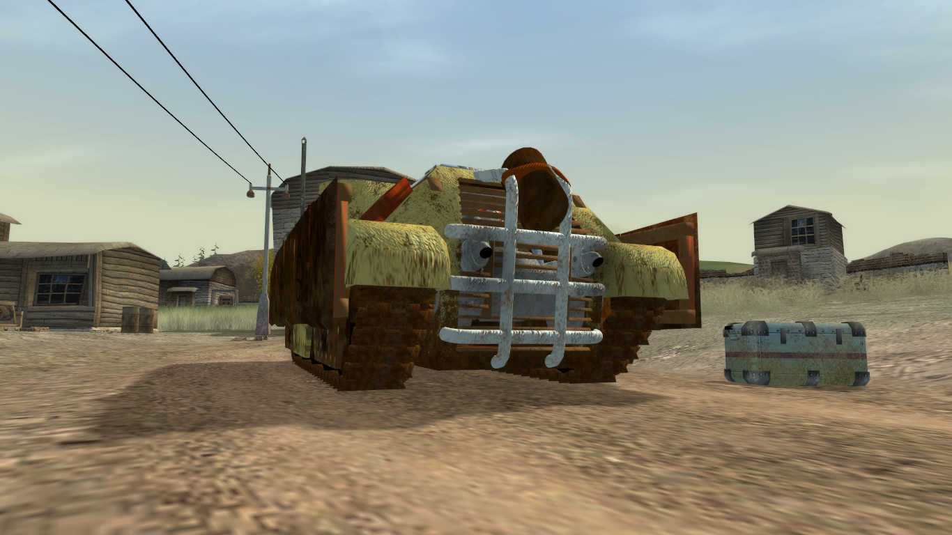 Шасси и части машины добавлены во все города, а также в спаун противников. Имеются 7 вариантов покраски в оригинальном стиле игры, описания, иконки. Танк можно получить стандартной командой консоли "car (22)".