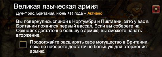 Там все весьма просто. Путешествуешь по Британии, присоединяешь разных типов к своей армии типа Секты Ромула или пленников викингов у Пиктов. И со временем армия сама наберется. По сюжету она наберется когда война между Нортумбрией и Пиктавией закончится победой одной из сторон.