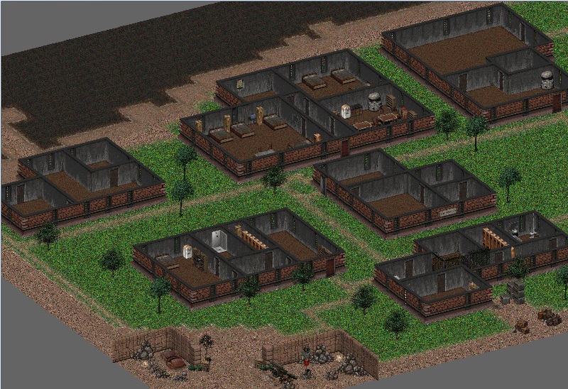 Дома не доделанные из за того, что персонажами был больше увлечен. Во всех зданиях будут нпс с диалогами, выкриками, смешными фразами ).