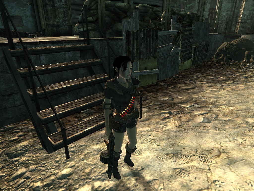 Решила как-то моя героиня Улыбку Джека навестить. Воспользовавшись быстрым переходом и появившись в Эвергрин-Миллс она услышала выстрел... Убив пару рейдеров она нашла перед дверью тело мужчины, а на нем голодиск....