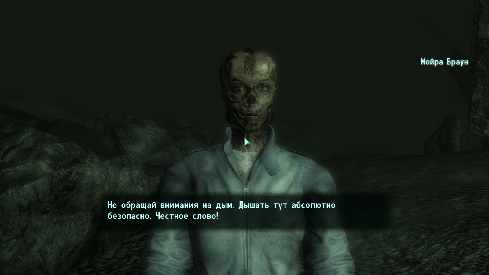 Взорвал Мегатонну, вернулся на развалины, нет реплик убеждения в том что она гуль, тупо стоит и 2 реплики [1) Починка, 2) Мне пора]. Знаю что это связано с тем, что написал книгу / выполнил квест «Руководство по выживанию на пустошах».
