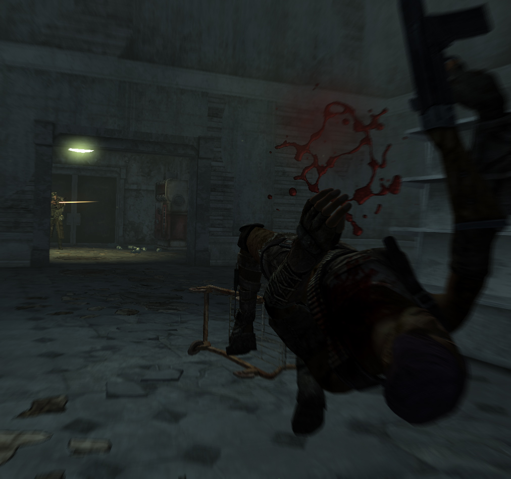 А вот здесь у супермутанта уже нет головы, но он всё ещё на ногах: