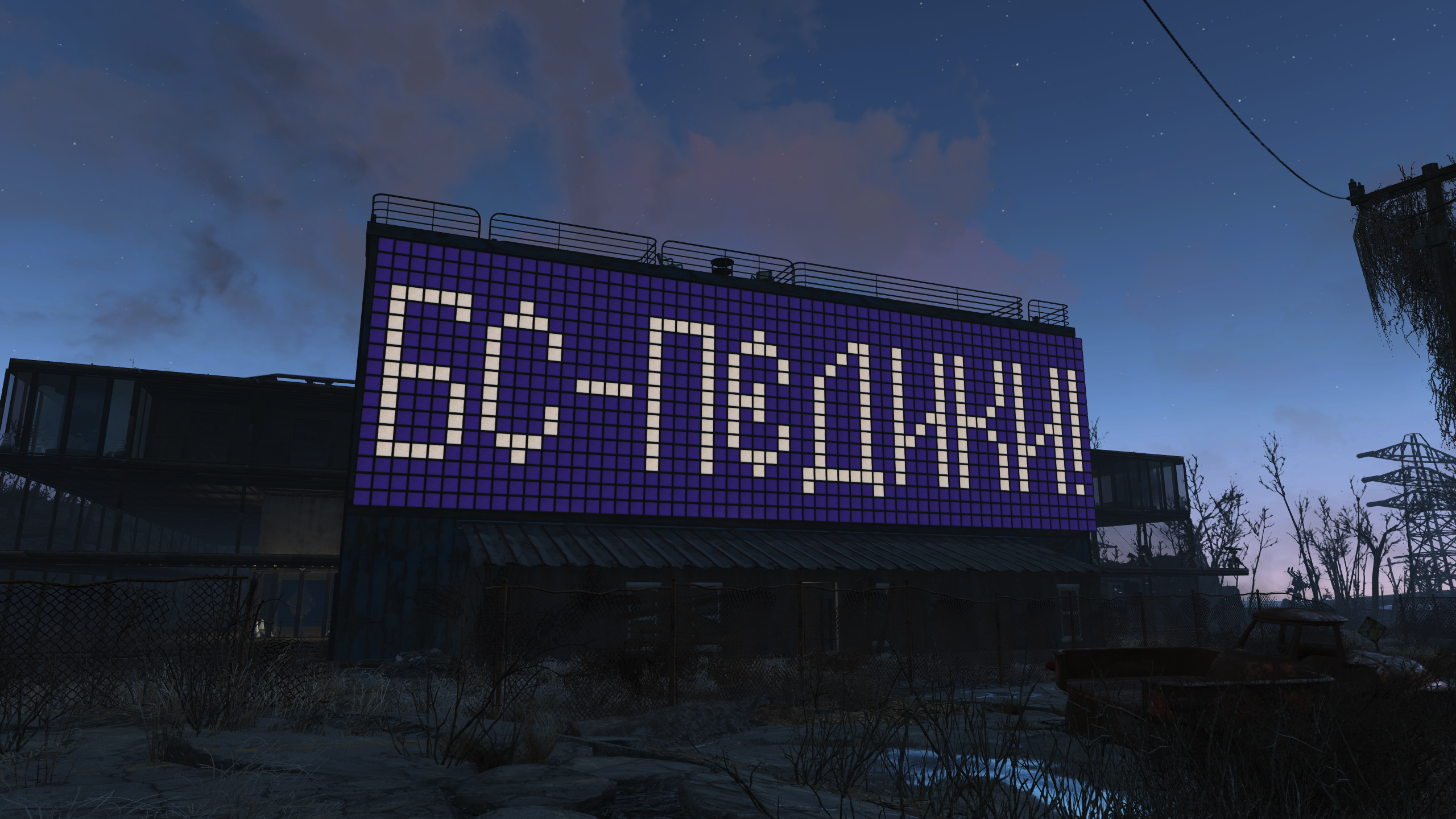Владислав Вовк слушай я в игру уже давно не играю, во первых должны обязательно стоять все dlc т.к. шрифт и неоновые вывески в релиз не входили они выходили намного позже с dlc ну и где то там не помню точно был шрифт разного цвета - набираешь текст по буквам нужного тебе цвета, ставишь рядом генератор, что бы надпись светилась