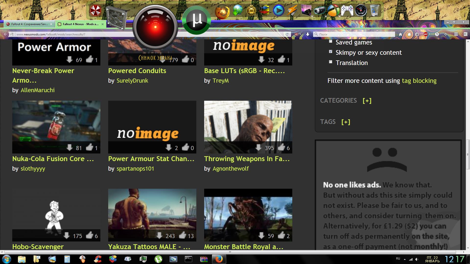 SKVERNING1 Я чего то как то в шоке. Каким образом игра разбилась на два диска? 0_о и закачку игры и установку я произвела на диск Е там есть папка файлы и бла бла, а нашла папку фоллаута на диске С и там же еще и сейвы игры есть которые я обыскалась. Пипец какой то, ничо не понимаю. То есть сначала я, меняю файлы в игре, потом качаю Нексус?