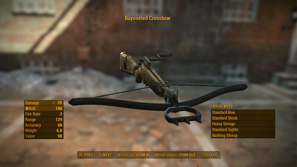 - Арбалет по сути винтовка, используется перк Стрелок. Игрокам которые отыгрывают роль скрытности и снайпера, арбалет придется по вкусу.