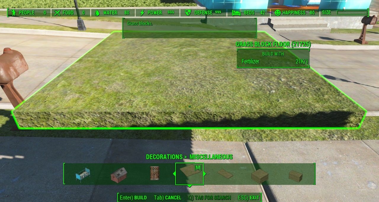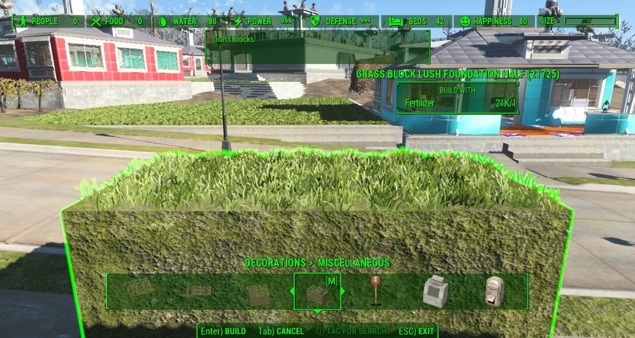 8 новых блоков из травы, которые можно использовать при постройке ваших поселений. Уникальные текстуры, несколько видов блоков (плоские и нет). Можно строить в любой поселении с помощью мастерской в разделе "Декорации - Прочее".