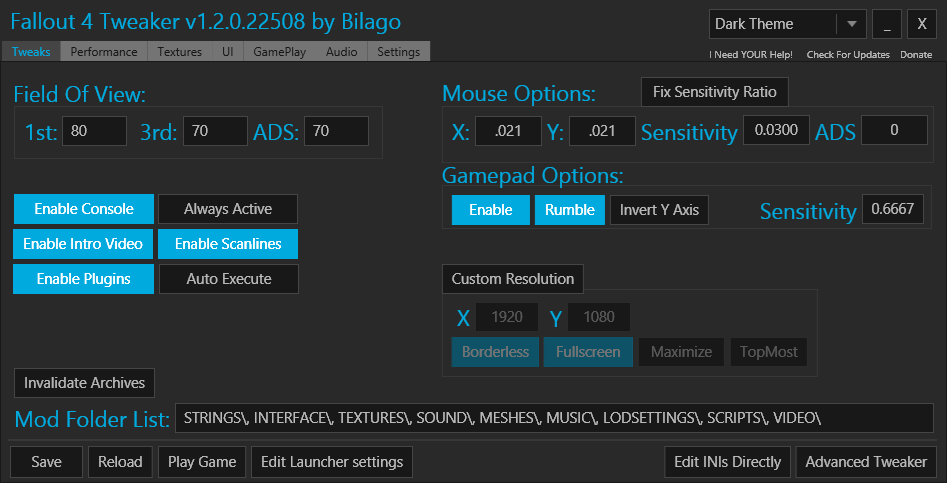 Ability to Overwrite the Fallout4Prefs.ini file in your game directory (will help those who cant get the game to change)