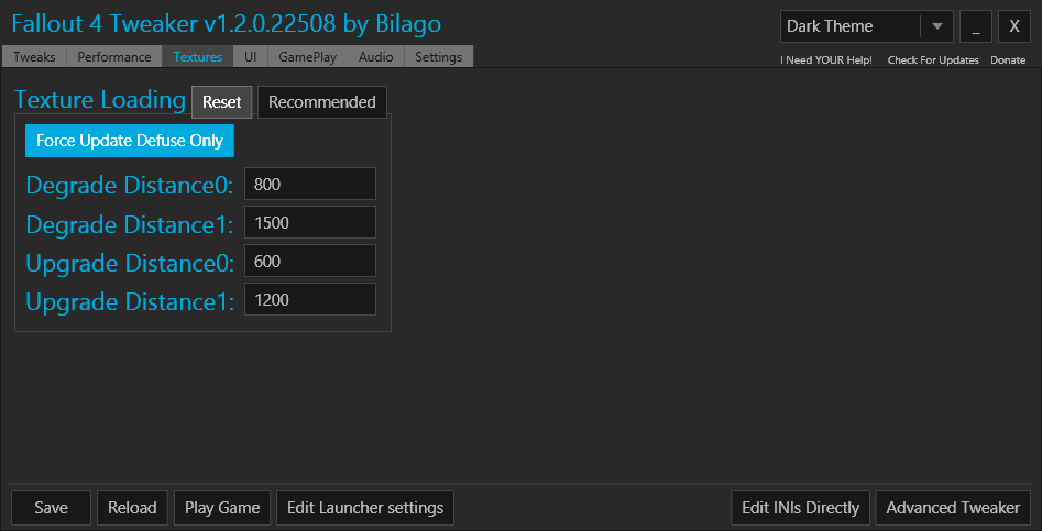 Updated the recommended Texture Loading Values. Press "recommended" to update your values! (Textures tab)