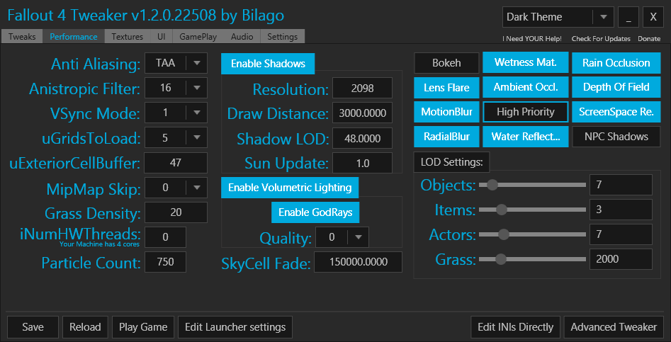 Added High CPU priority tweak which sets information in the registry to always execute fallout4.exe with HIGH cpu priority.