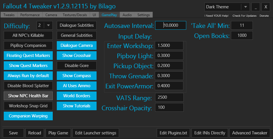 Added High CPU priority tweak which sets information in the registry to always execute fallout4.exe with HIGH cpu priority.