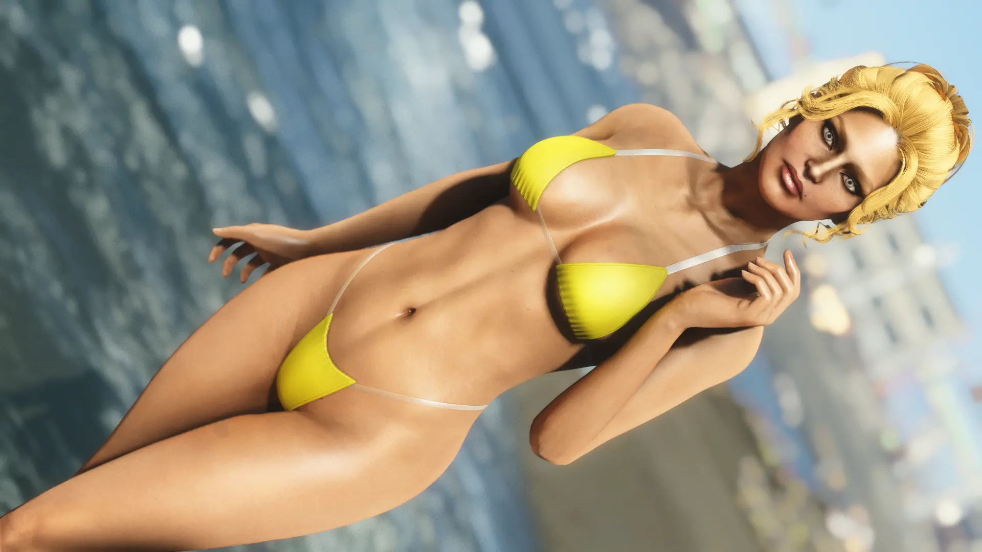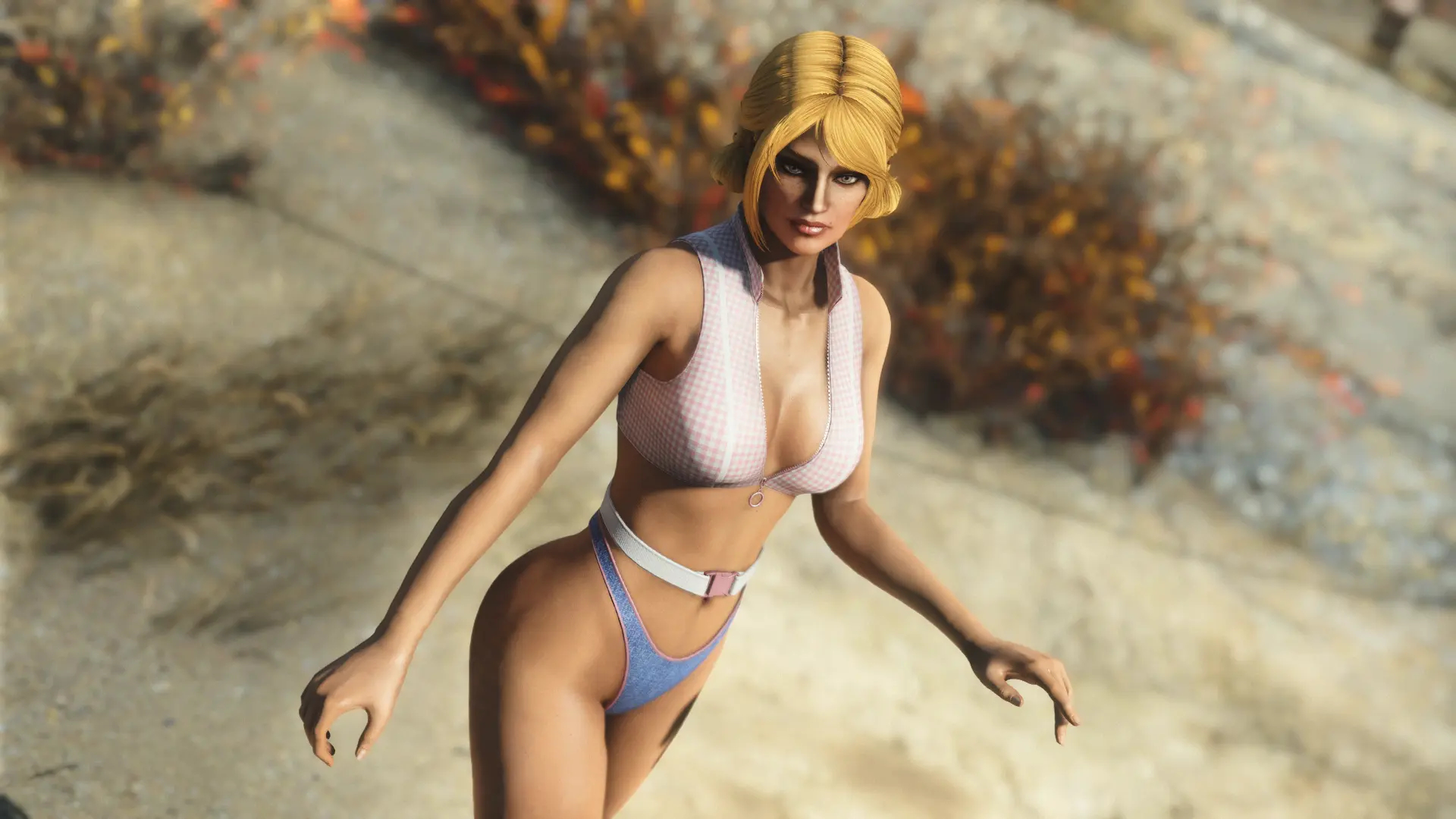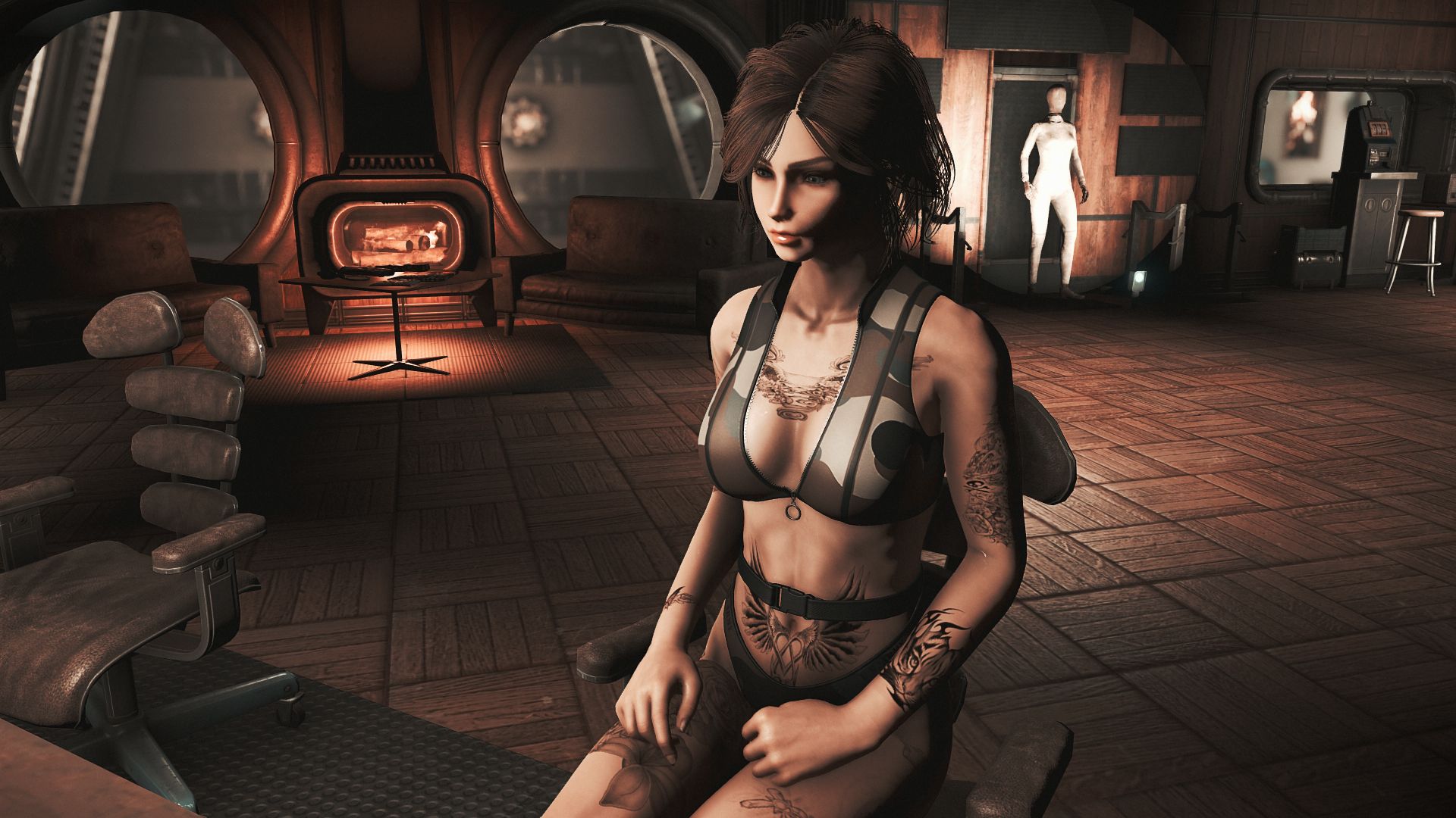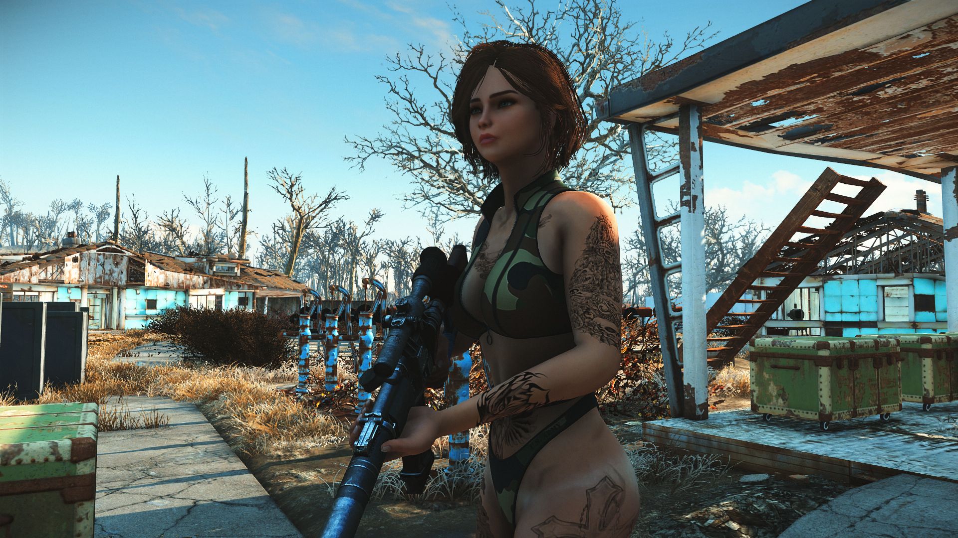 Модификация добавляет огромную коллекцию сексуальны купальников. Пятьдесят девять уникальных купальников, которые можно носить как нижнее белье. Пять дизайнов можно создать на химической станции в категории «Коллекция бикини DX». Вы можете изменить их внешний вид на верстаке для брони. Их можно улучшить на верстаке по изготовлению брони с помощью специальной баллистической ткани, для которой не требуется специальный перк, купальники дают +2 к Харизме.