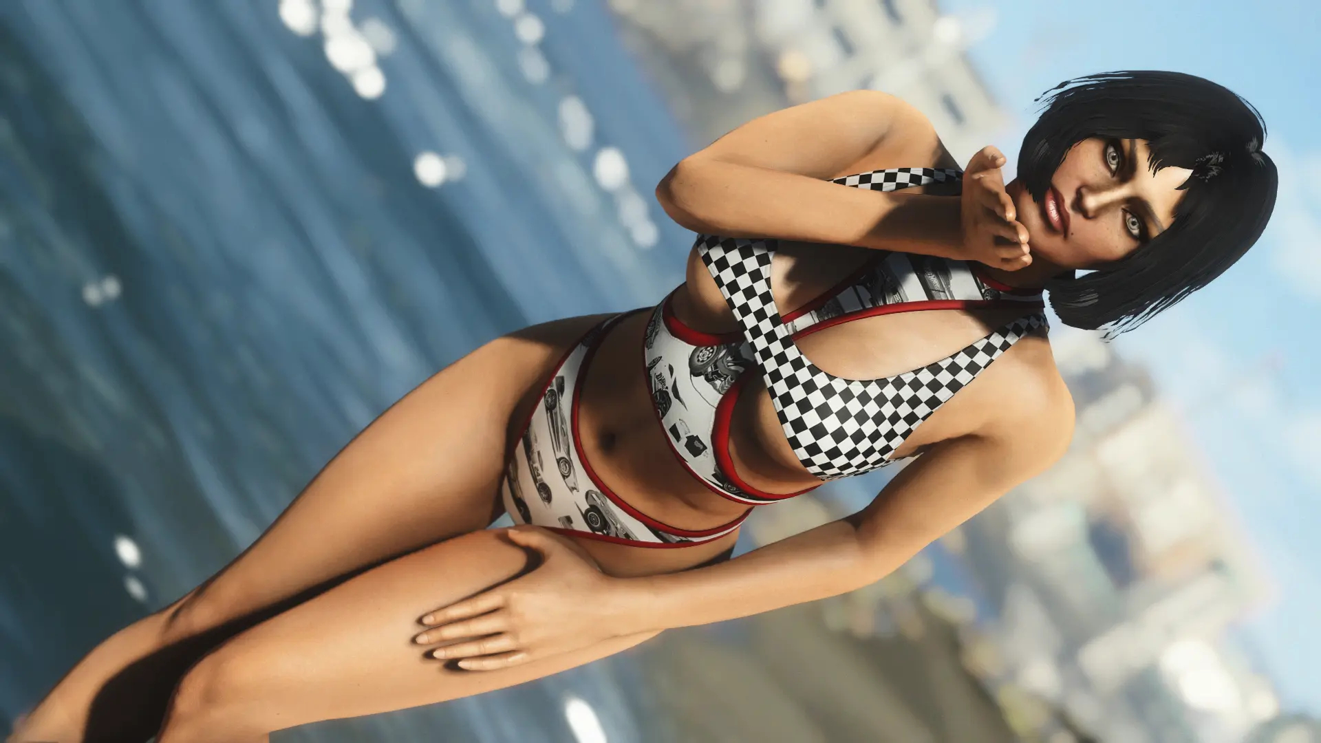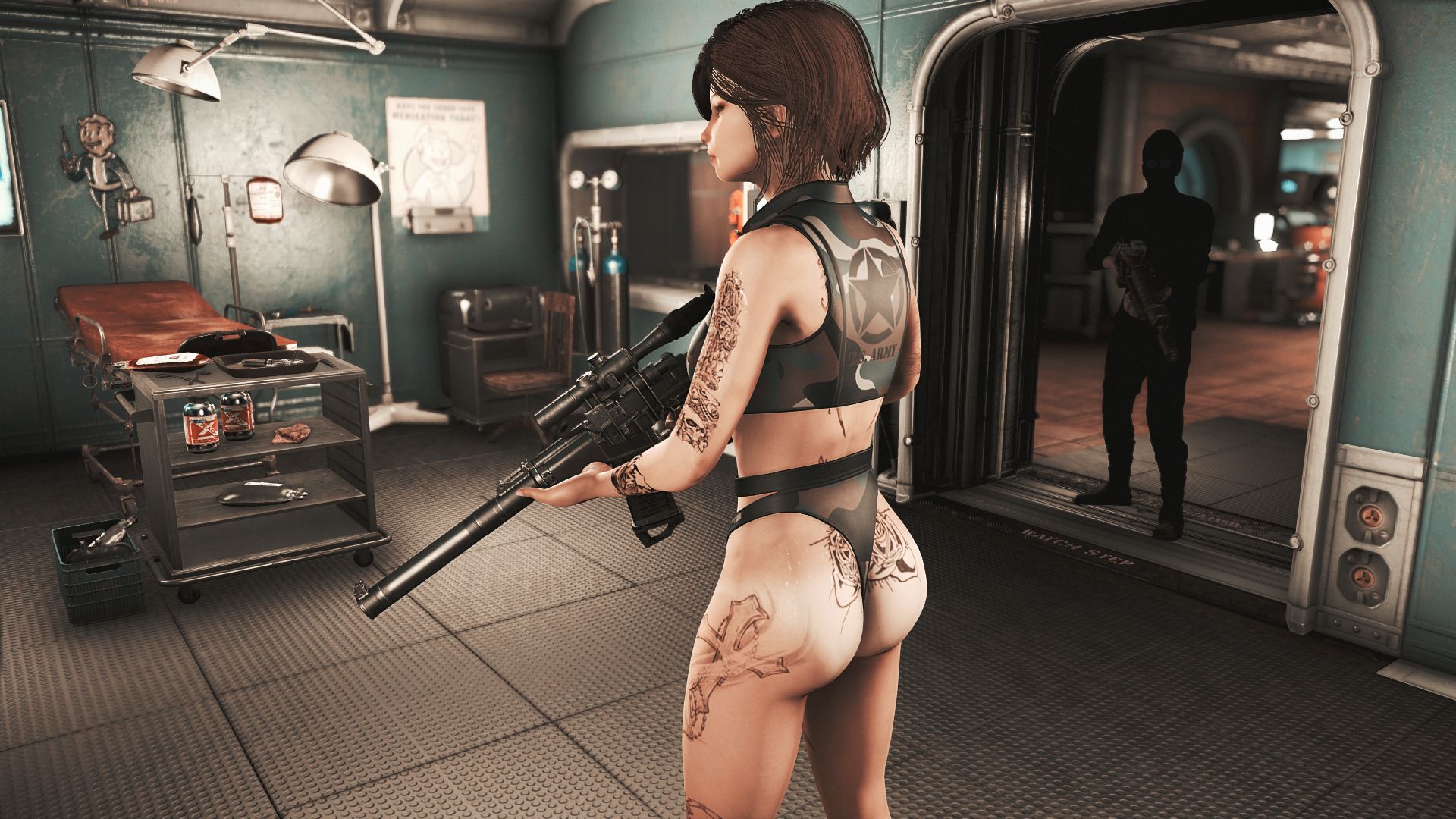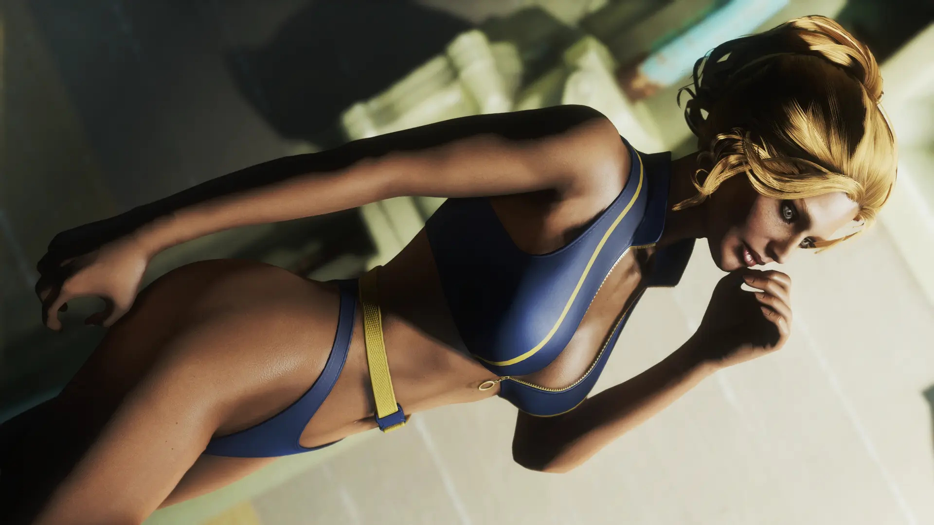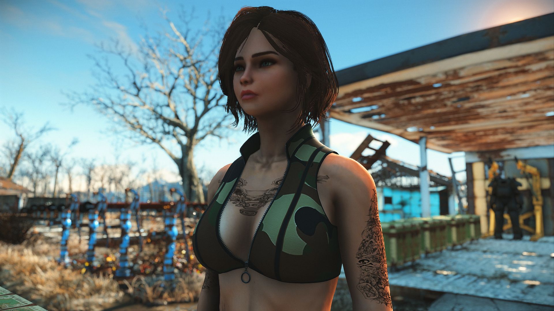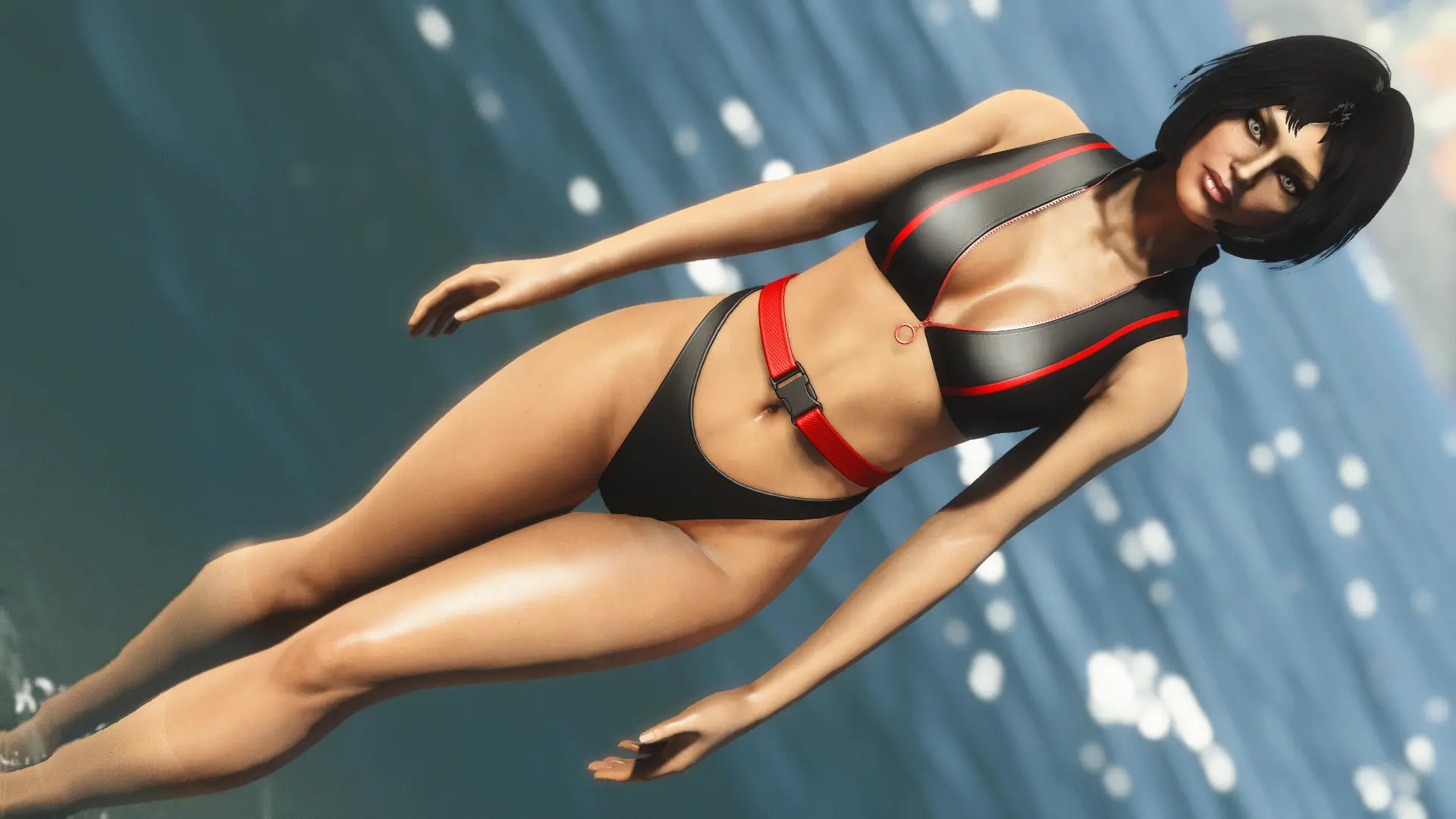 Модификация добавляет огромную коллекцию сексуальны купальников. Пятьдесят девять уникальных купальников, которые можно носить как нижнее белье. Пять дизайнов можно создать на химической станции в категории «Коллекция бикини DX». Вы можете изменить их внешний вид на верстаке для брони. Их можно улучшить на верстаке по изготовлению брони с помощью специальной баллистической ткани, для которой не требуется специальный перк, купальники дают +2 к Харизме.
