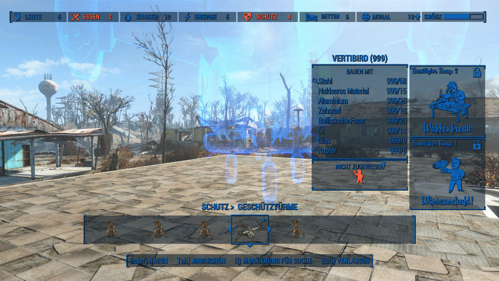 2. Если вы не хотите искать схемы для того чтобы создавать Винтокрыл, Вертолетную площадку, Блок управления и Верстак для улучшения Винтокрыла, то установить патч NeutralVertibirdsNoSchematics.esp
