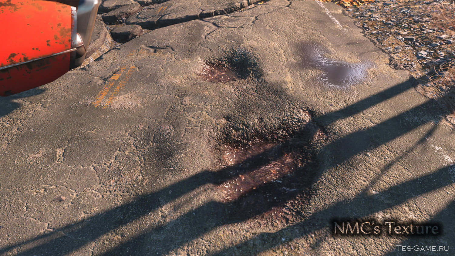 HD ретекстур всех асфальтовых дорог, ям и трещин в Fallout 4. Текстуры 4K, автор постарался сделать все как можно реалистичней.