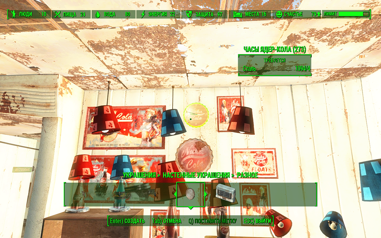 Мод добавляет различные предметы декора, а так же несколько типов светильников, стилизованных под бренд Nuka-Cola.