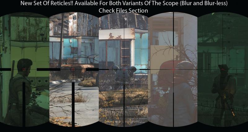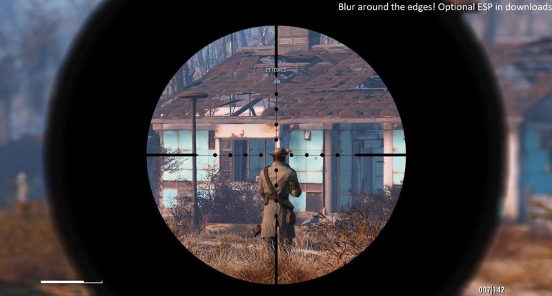 Данный мод является реплейсером стандартного прицела в Fallout 4 и всех сопутствующих эффектов. Вместе с этим изменяет прицел (несколько вариантов для разных прицелов), добавляет размытия по бокам, больше теней.