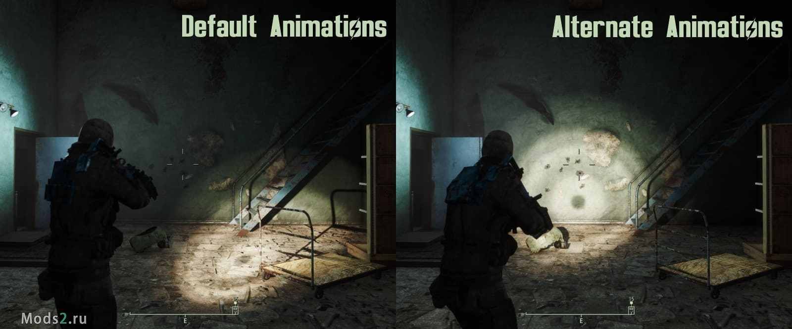 1. В папках "01-50% и тому подобных"... находятся файлы Pip-Boy Flashlight.esp без теней с разной дальностью освещения. А в папках "shadows" находятся папки... правильно - Pip-Boy Flashlight.esp с тенями и разной дальностью освещения. И да! "Динамические тени" порядком запаздывают.)