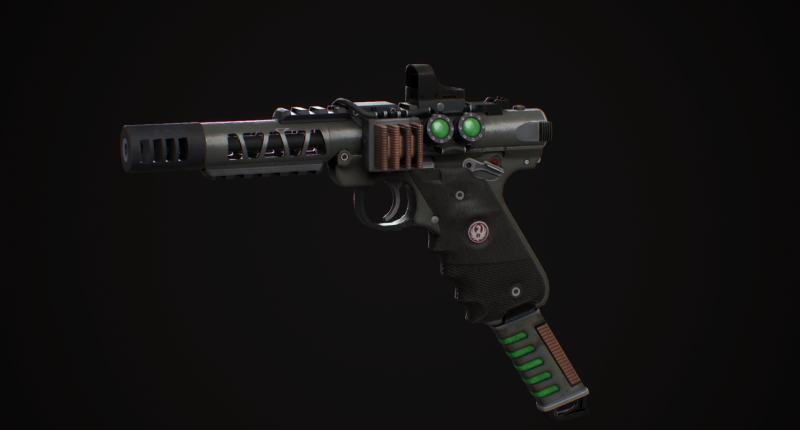 Пистолет добавлен в левел лист с помощью скрипта. Такой же по уникальности, как револьвер .44 калибра. Также доступен в химической лаборатории для изготовления. И ещё через консоль "Ruger".