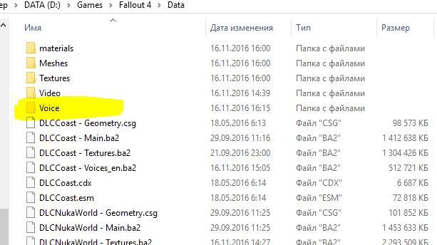 Скопировать содержимое папки Sound в папку игры ( по умолчанию C:Games/Fallout 4/Data )