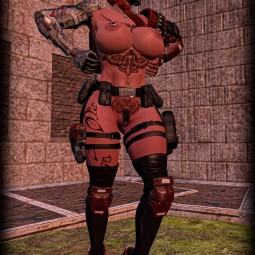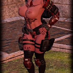 Это отчаявшийся боец-женщина, скорее уже женщина-синт, это образец. Бронегрудь из синтетико-химических вкладок обеспечивает прямое гасящее сопротивление, созданное по разработкам бывшего Института. Защита выдерживает баллистический урон от патрона с бронебойным сердечником калибра 10 мм на расстоянии до 100-50 м и значительной силы механический ударяющий урон плашмя. Химико-мышечные участки тела на конечностях и животе, введённые в организм уже гормонально по подобной «упругой» технологии, обеспечивает защиту меньшего долевого значения, в среднем на 30-50%. Побочным признаком обоих синтетических генно-модификаций стало утолщение кожного покрова с последующим ухудшением по́рового пространства и ослаблением нервных окончаний. Следствием приведшего к быстрому перегреву тела бойца, требующего дополнительной охлаждающей смазочной жидкости, так же являющейся синтетическим веществом радиационной защитной плёнки. Для убережения тела бойца от повреждений при гашении удара позвоночник с основанием в поясничном отделе укреплён биотическими полимерными броне пластинами.