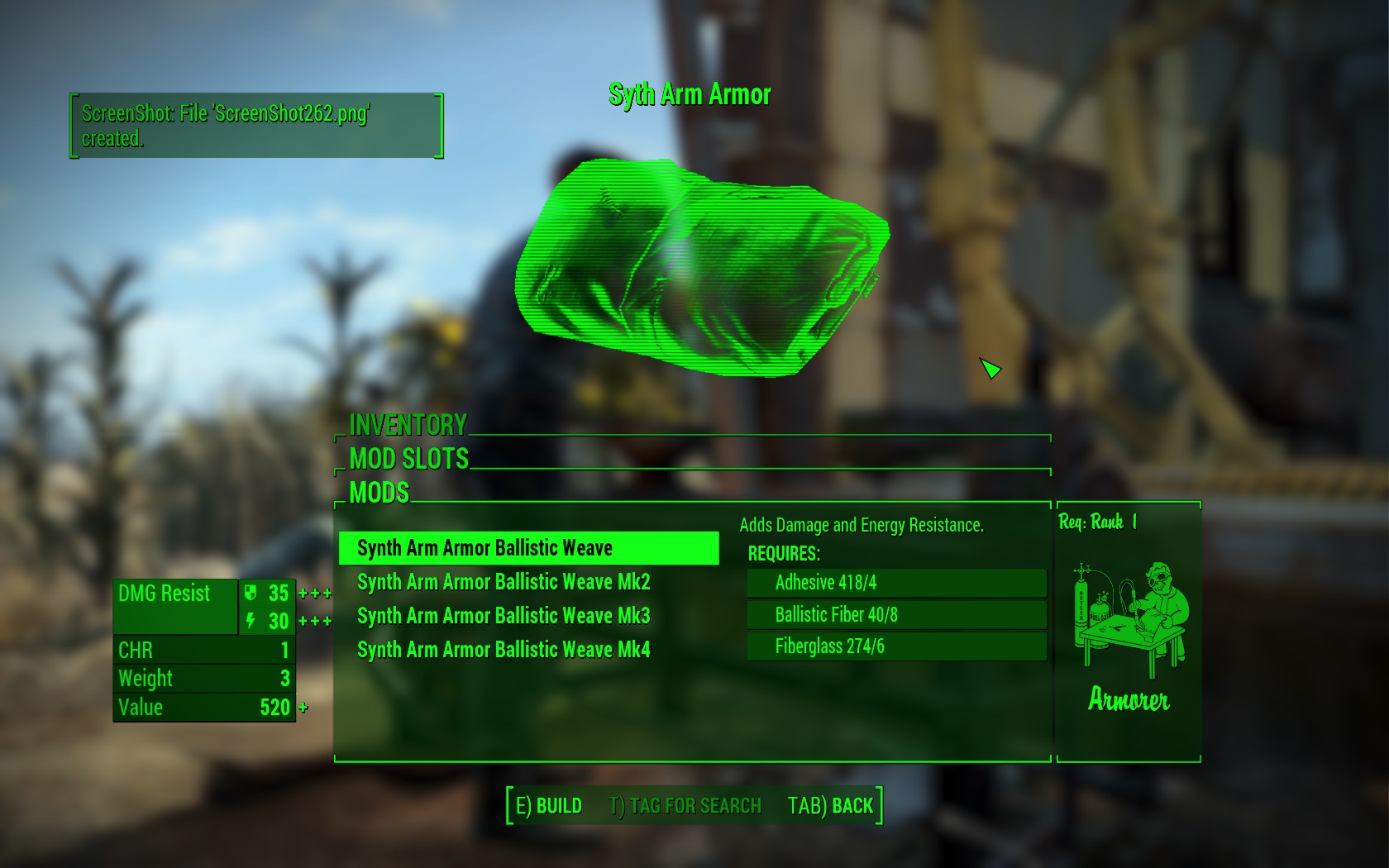 Этот мод добавляет новую броню в игру под названием "синтезатор броню рука"